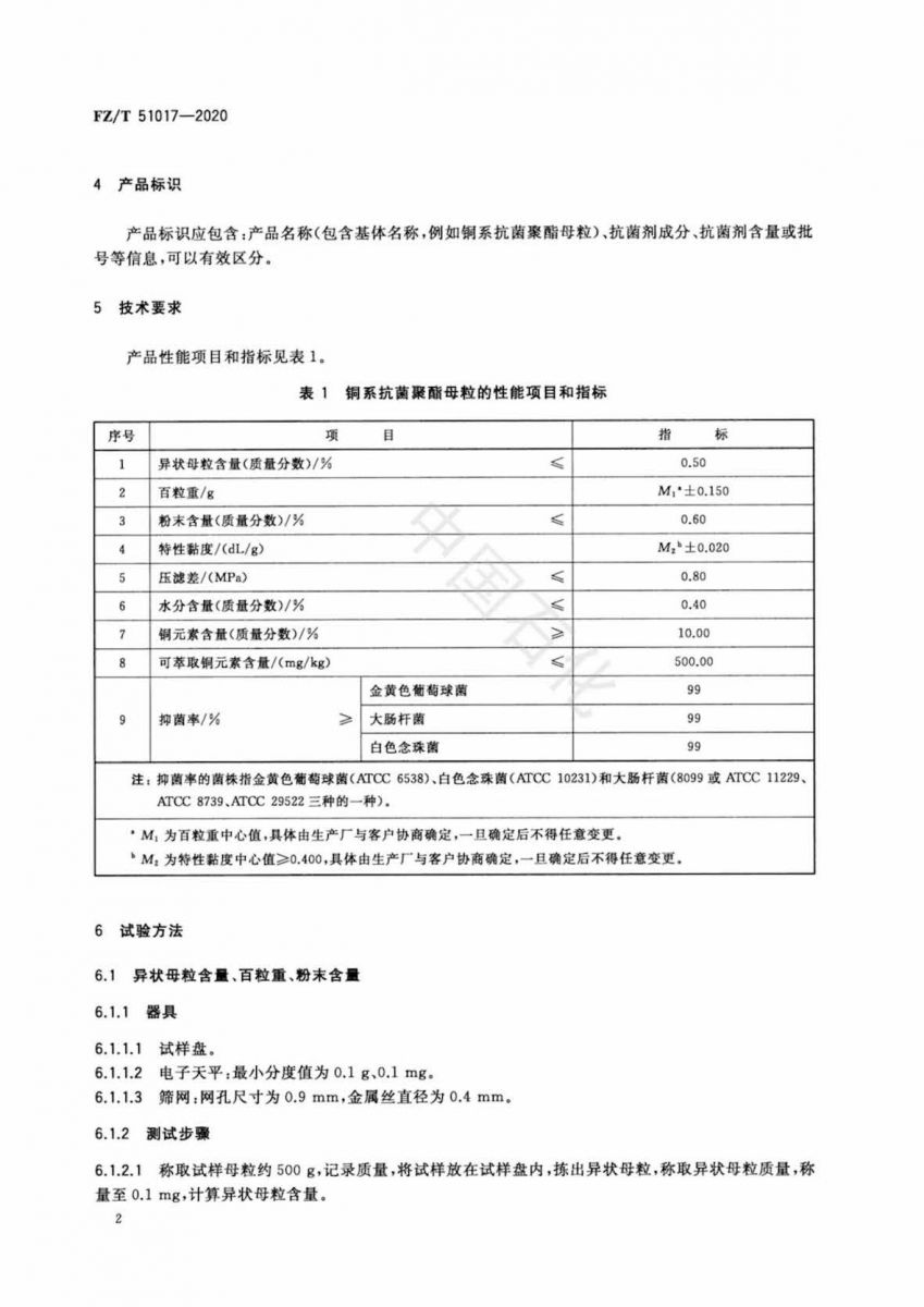 FZ/T 51017-2020 銅系抗菌母粒