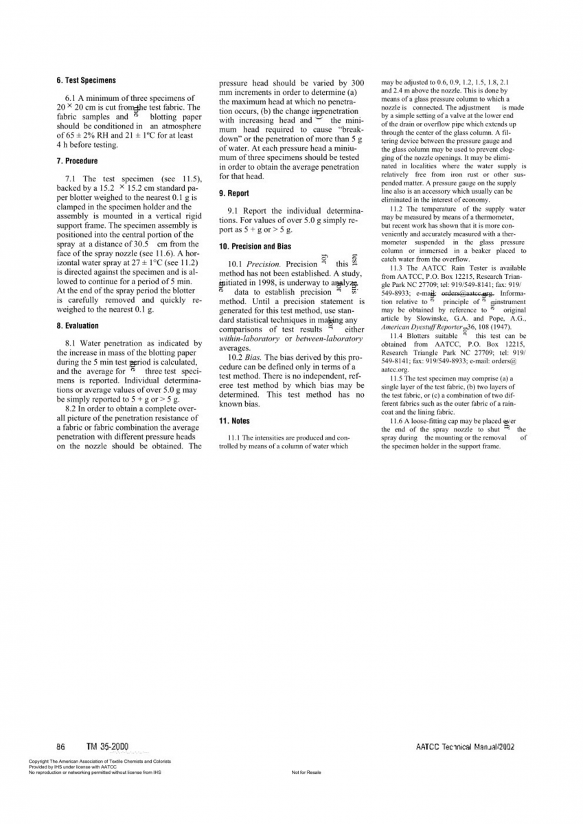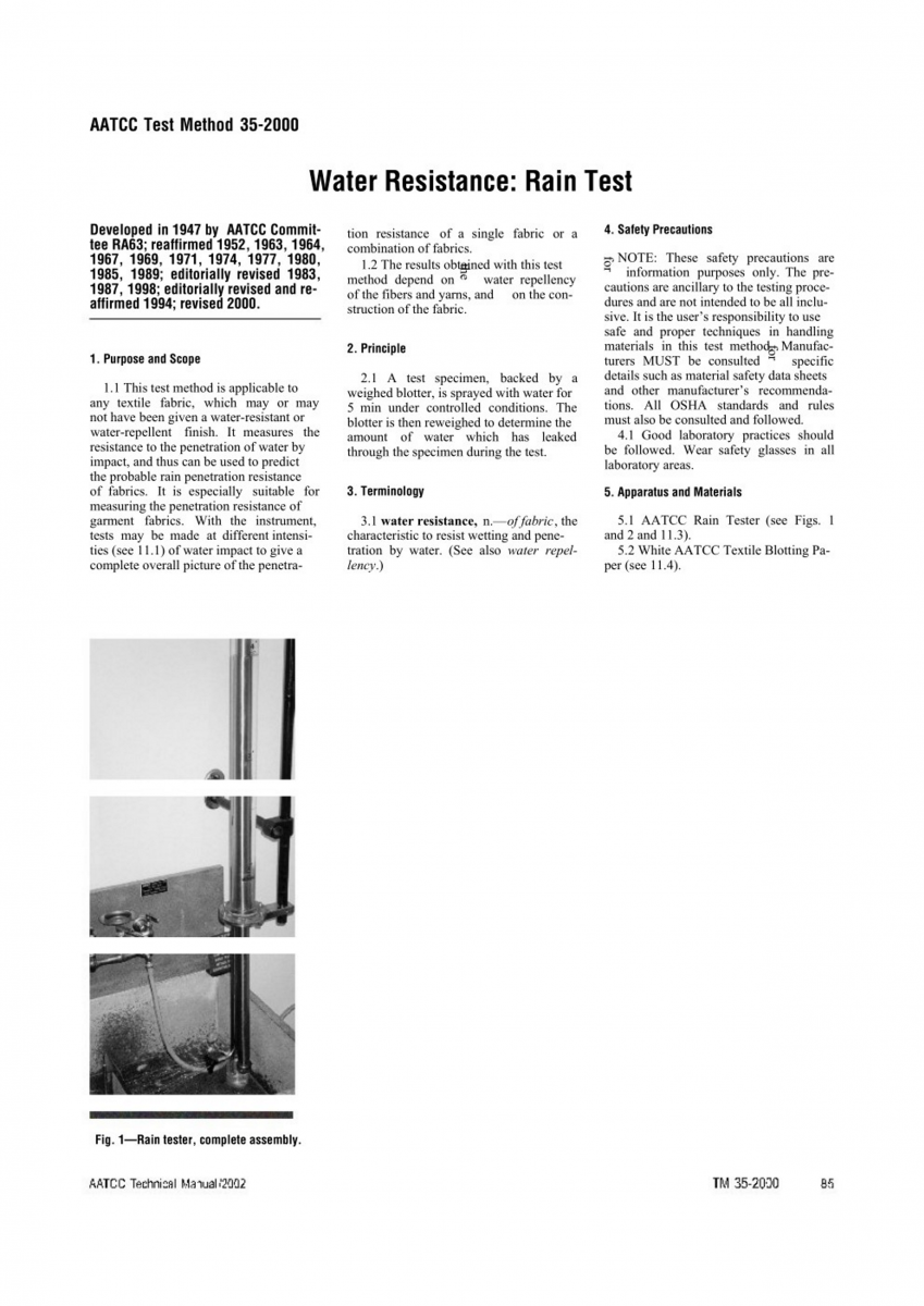 AATCC 35-2000 拒水性-淋雨測試