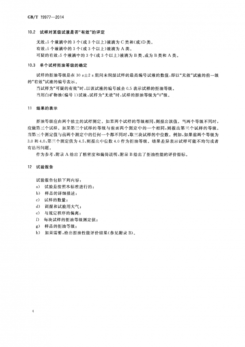 GB/T 19977-2014 紡織品 拒油性 抗碳氫化合物試驗