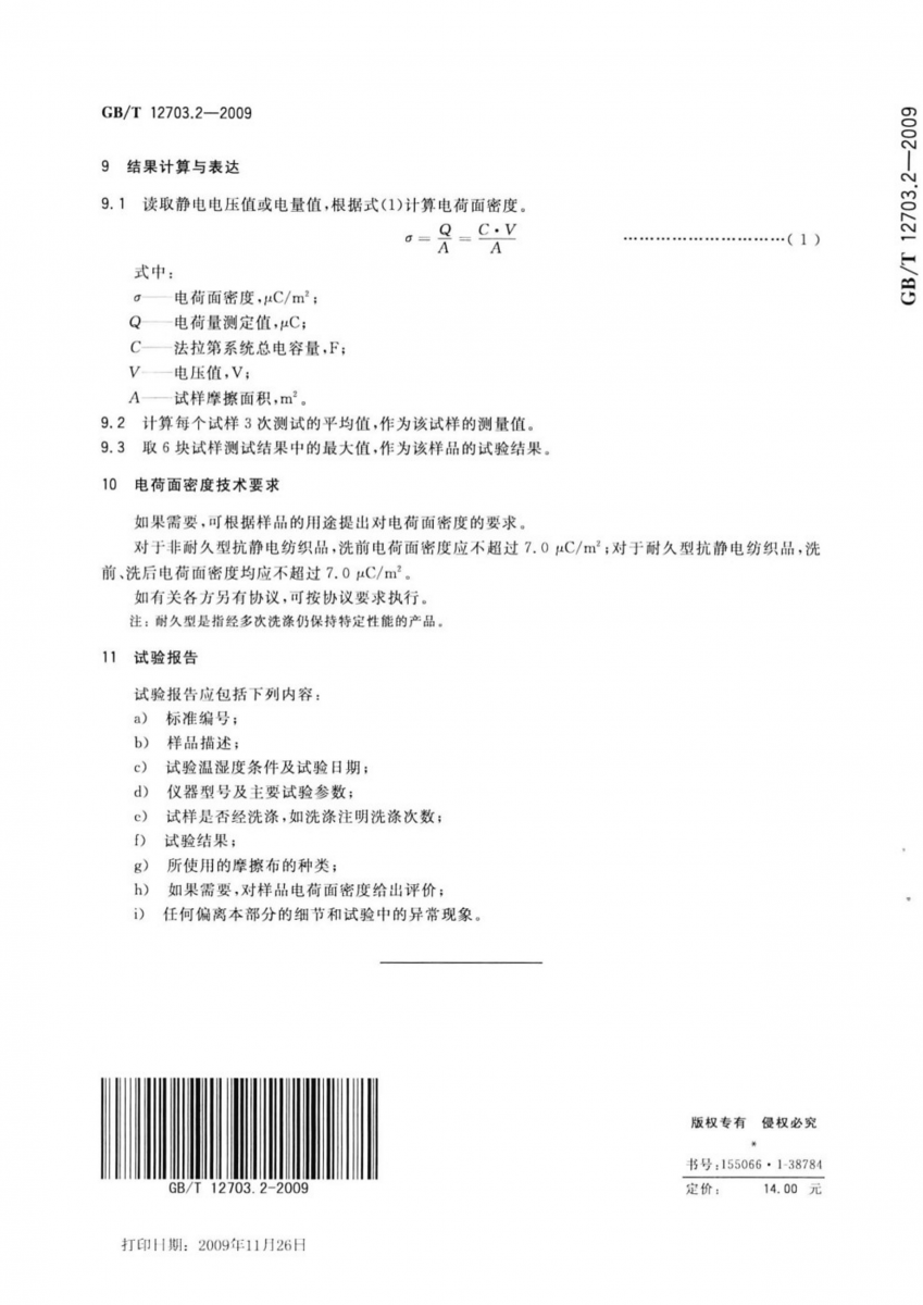 GB/T 12703.2-2009 紡織品 靜電性能的評定 第2部分:電荷面密度