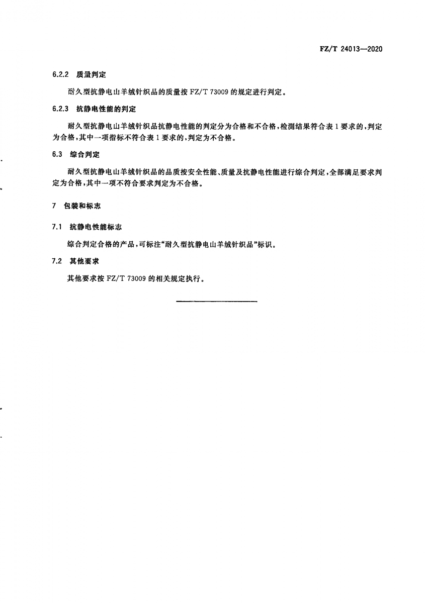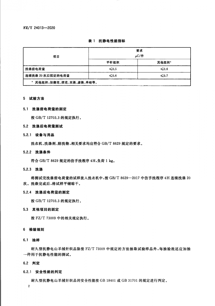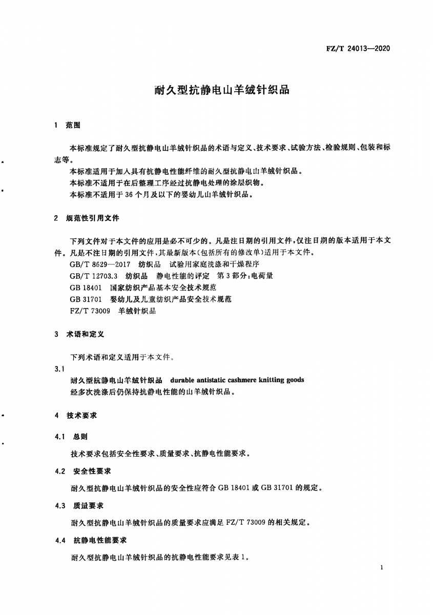FZ/T 24013-2020 耐久型抗靜電山羊絨針織品