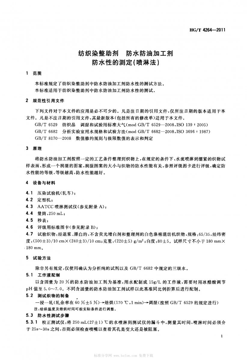 HG/T 4264-2011 紡織染整助劑 防水防油加工劑 防水性的測定(噴淋法)
