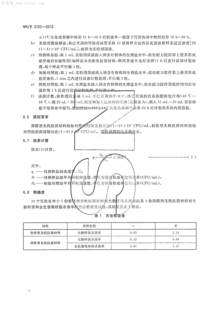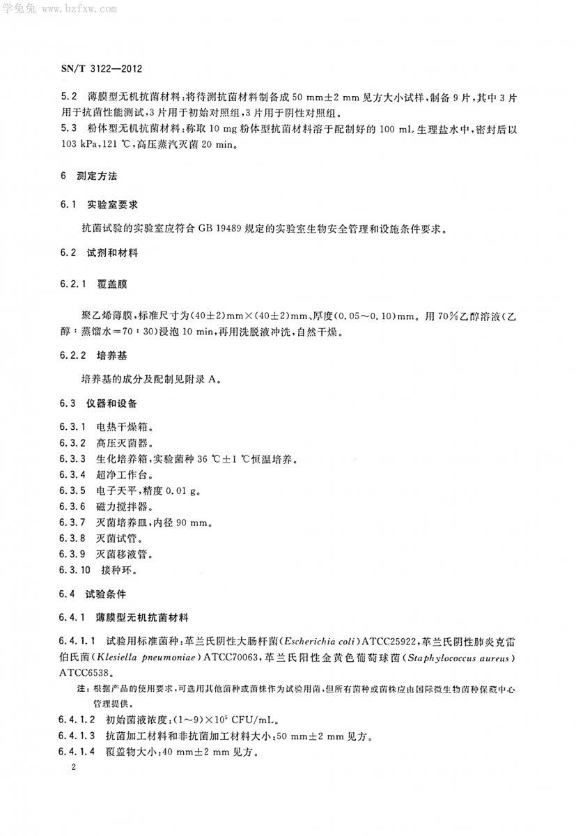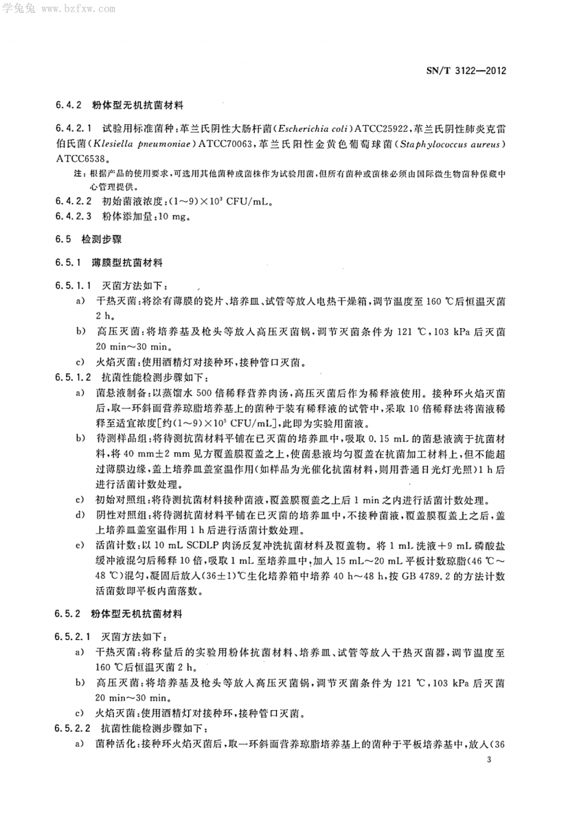 SN/T 3122-2012 無級抗菌材料抗菌性能試驗方法