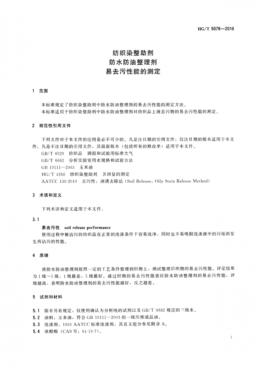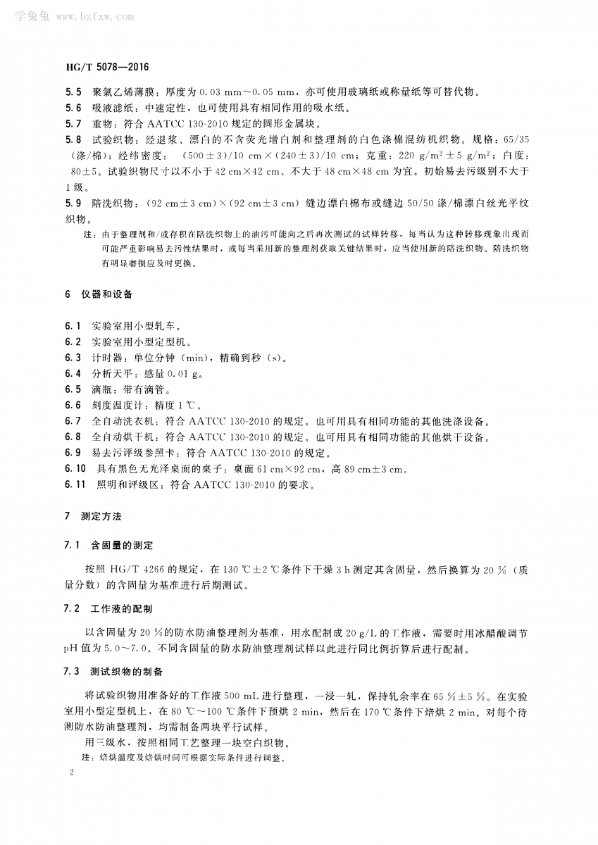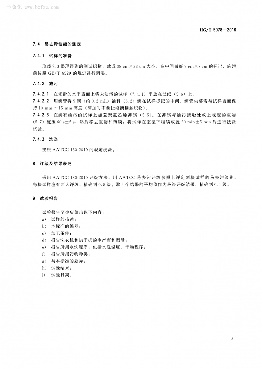 HG/T 5078-2016 紡織染整助劑 防水防油整理劑 易去污性能的測定