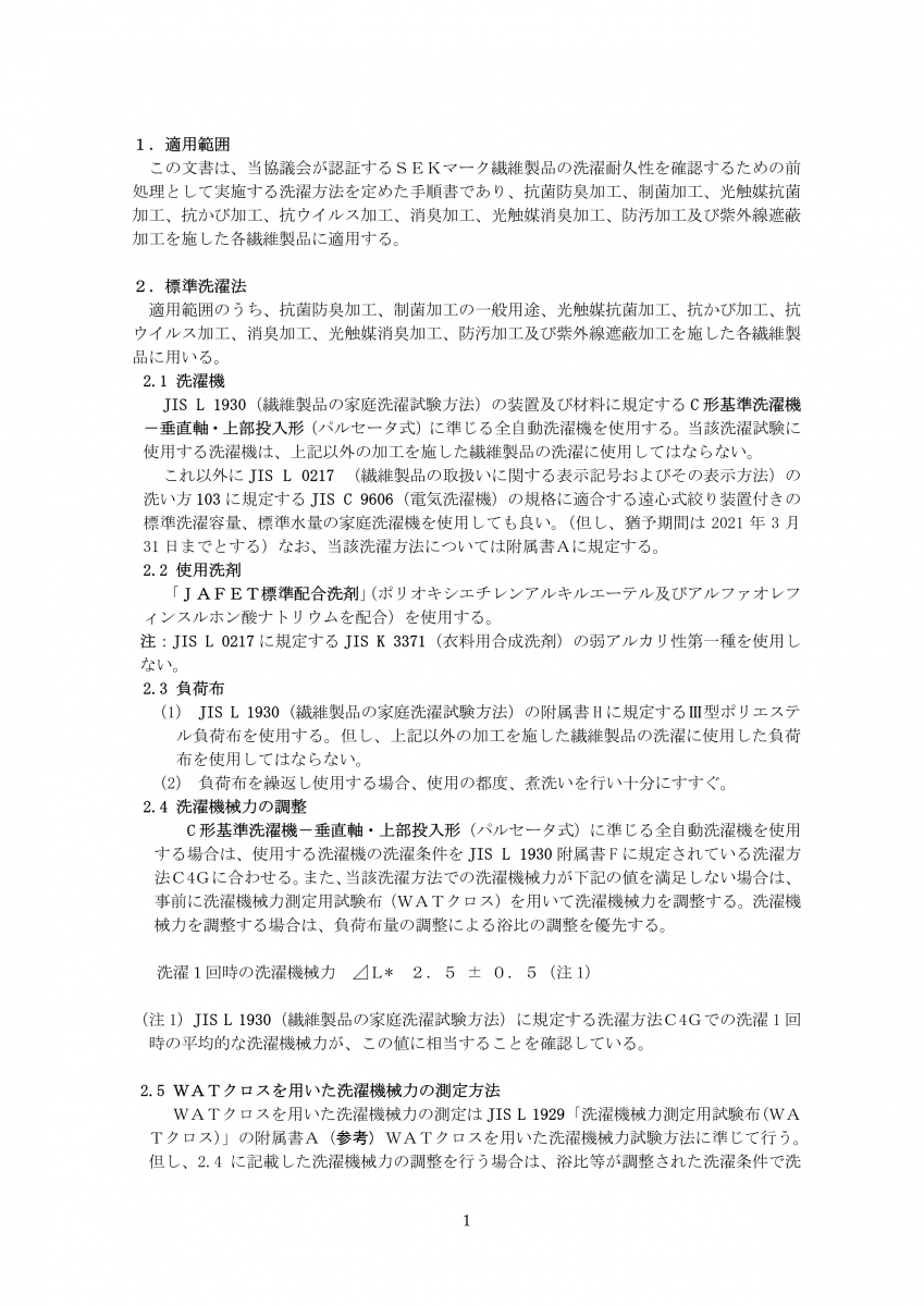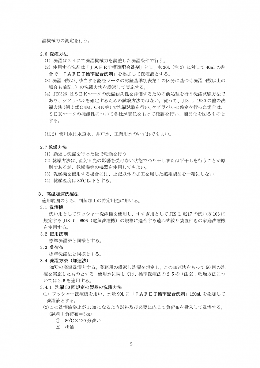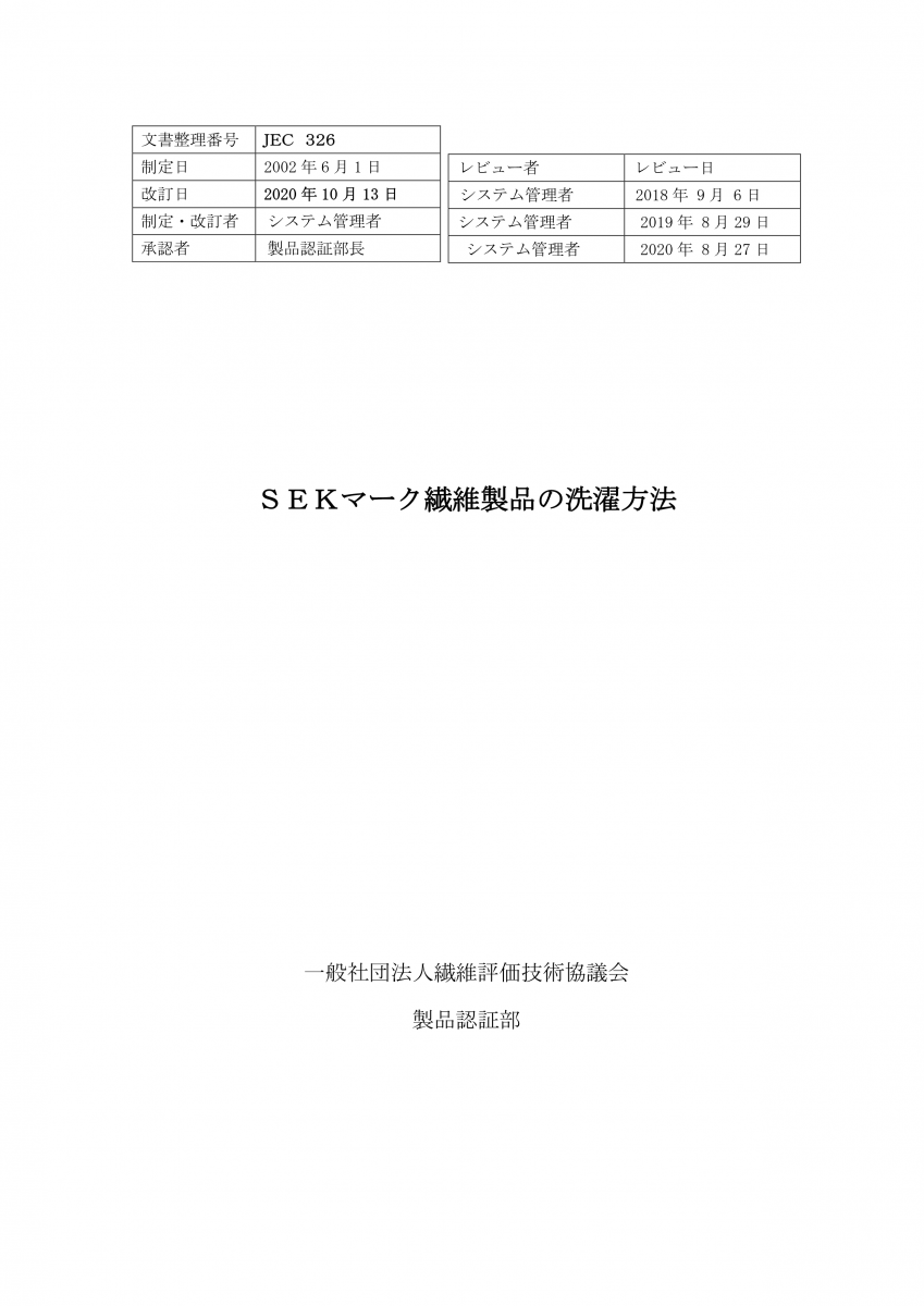 JEC 326 SEKマーク繊維製品の洗濯方法