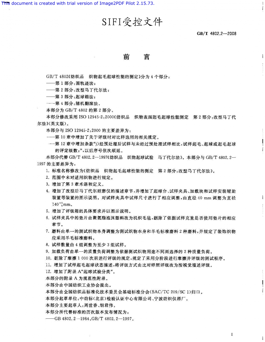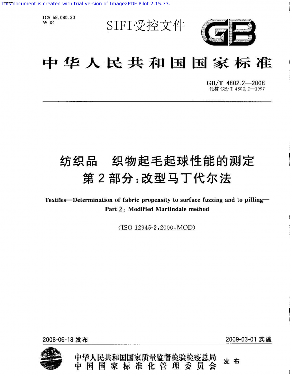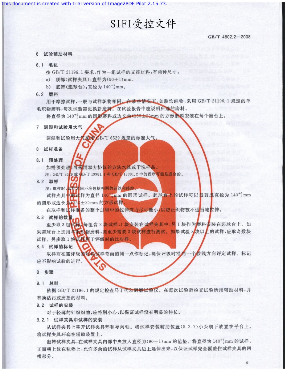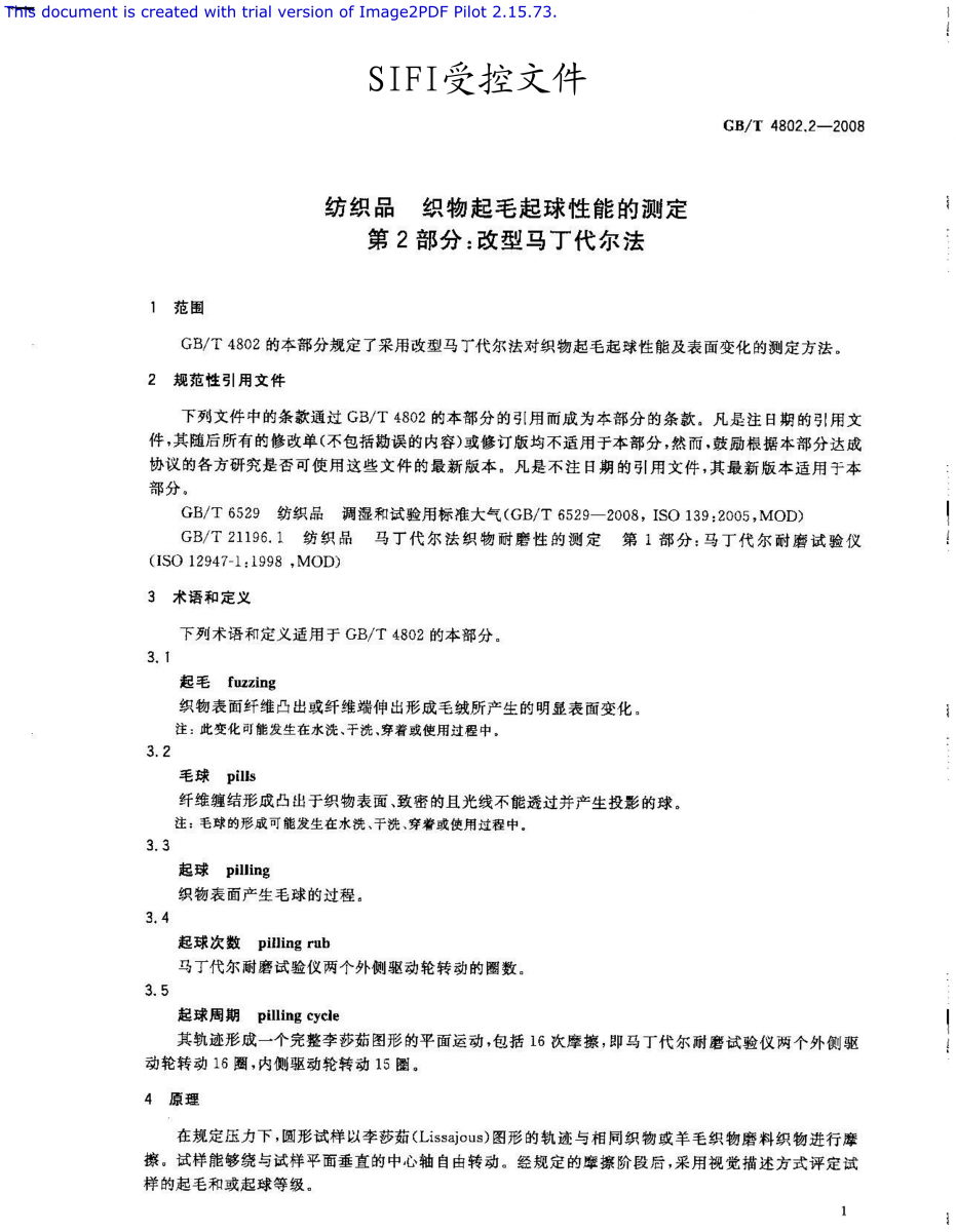 GB/T 4802.2-2008 紡織品 織物起毛起球性能的測定 第2部分 改型馬丁代爾法