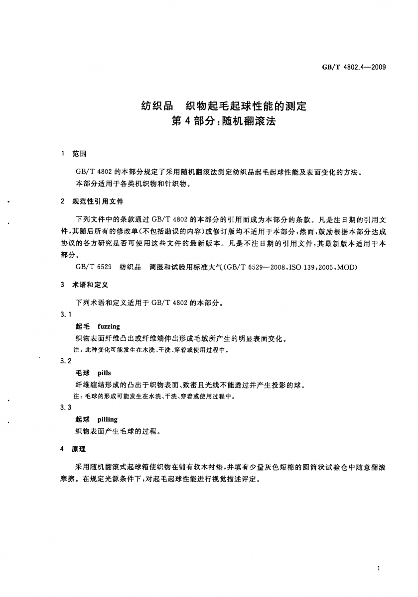 GB/T 4802.4-2009 紡織品 織物起毛起球性能的測定 第4部分 隨機翻滾法