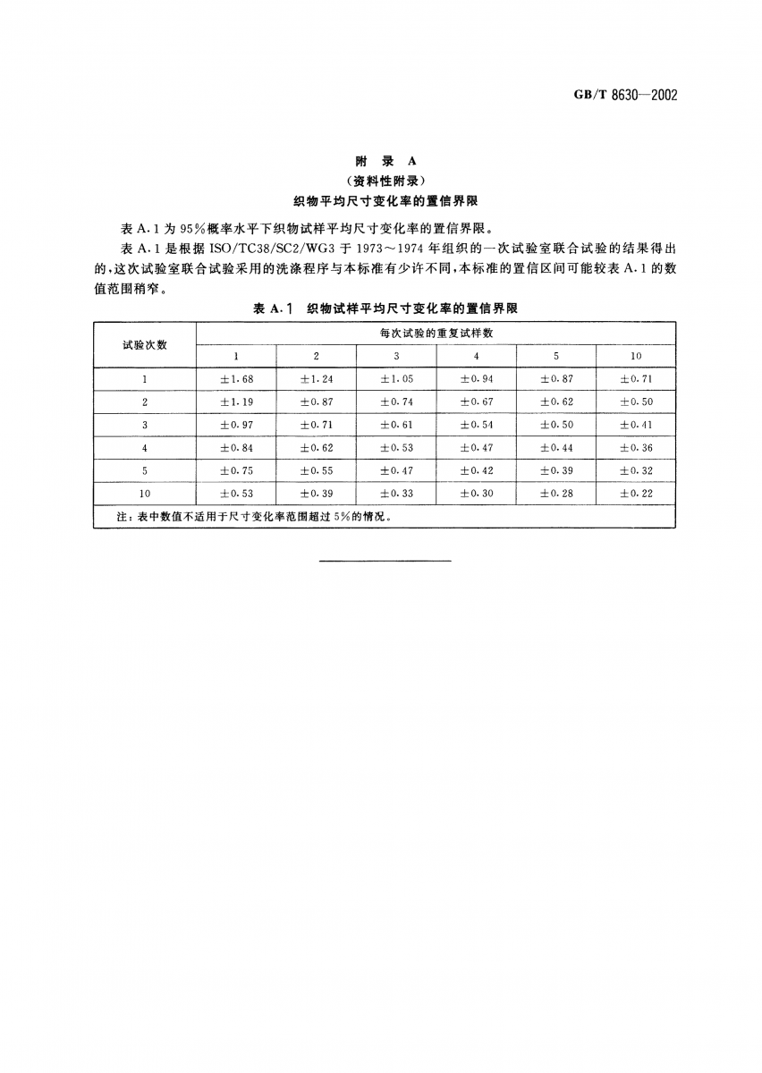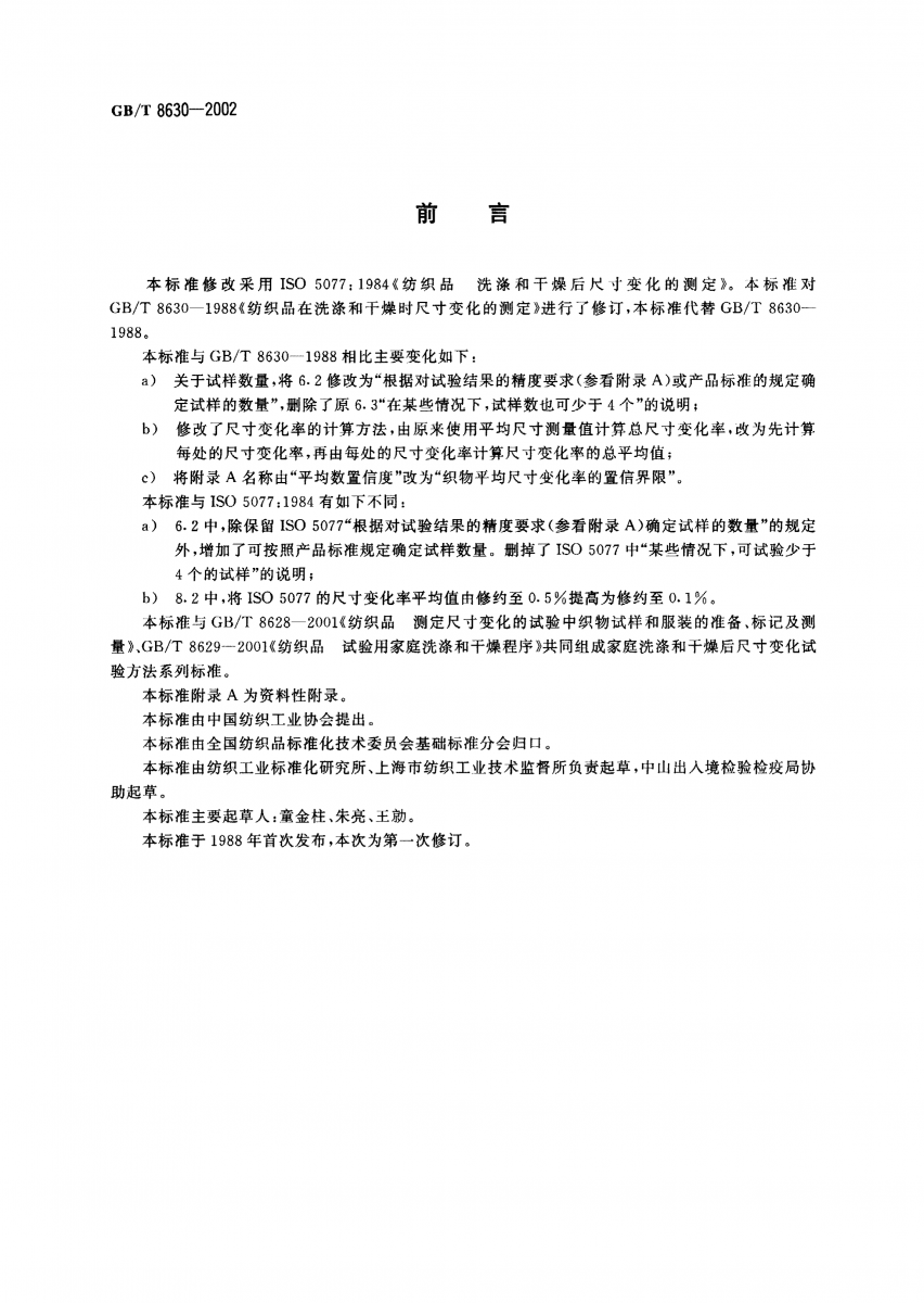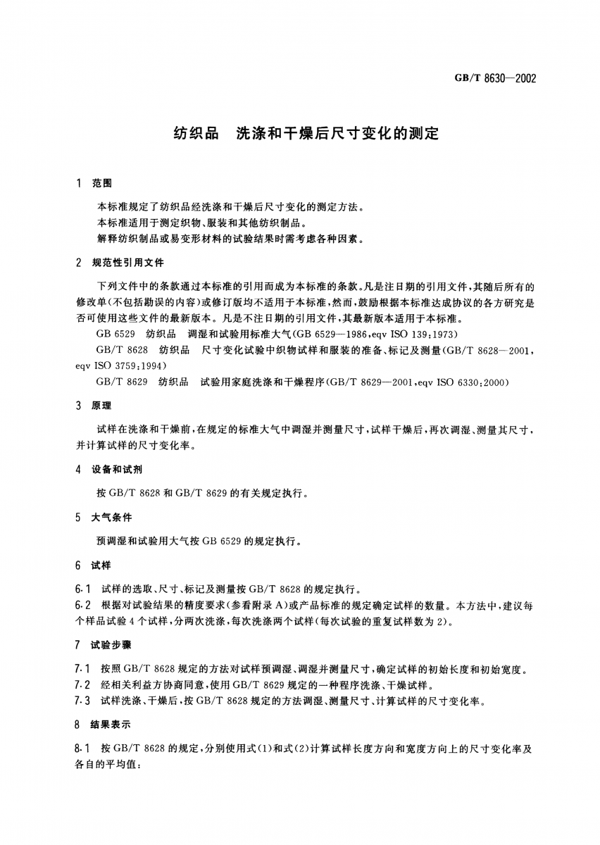 GB/T 8630-2002 紡織品 洗滌和干燥后尺寸變化的測定