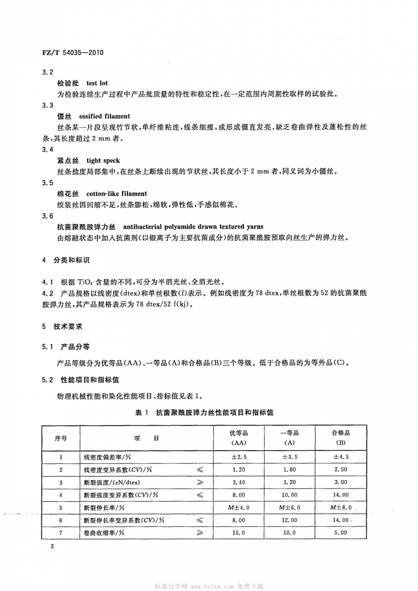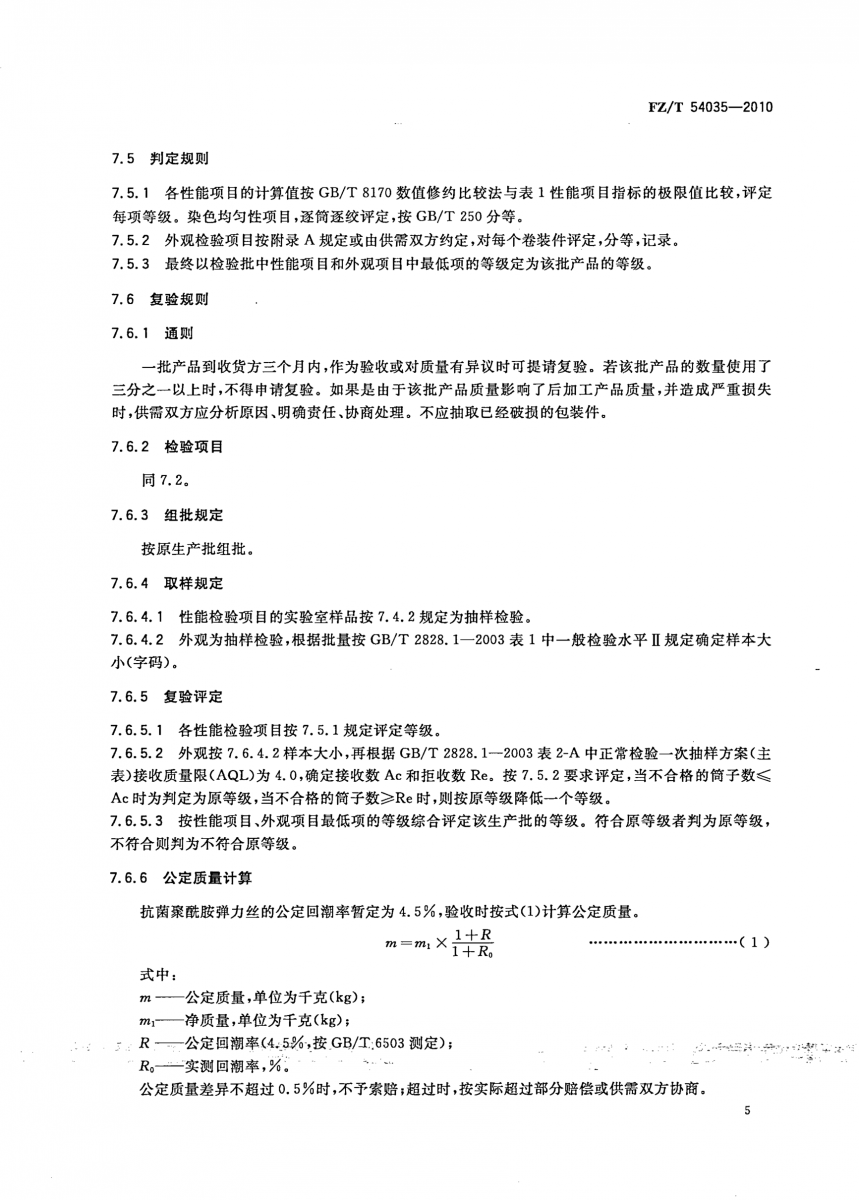 FZ/T 54035-2010 抗菌聚酰胺彈力絲