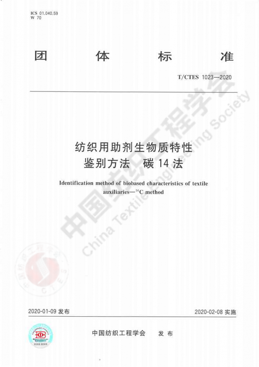 T/CTES 1023-2020 紡織用助劑生物質特性鑒別方法 碳14法