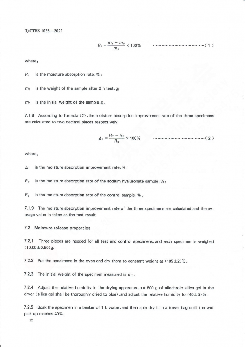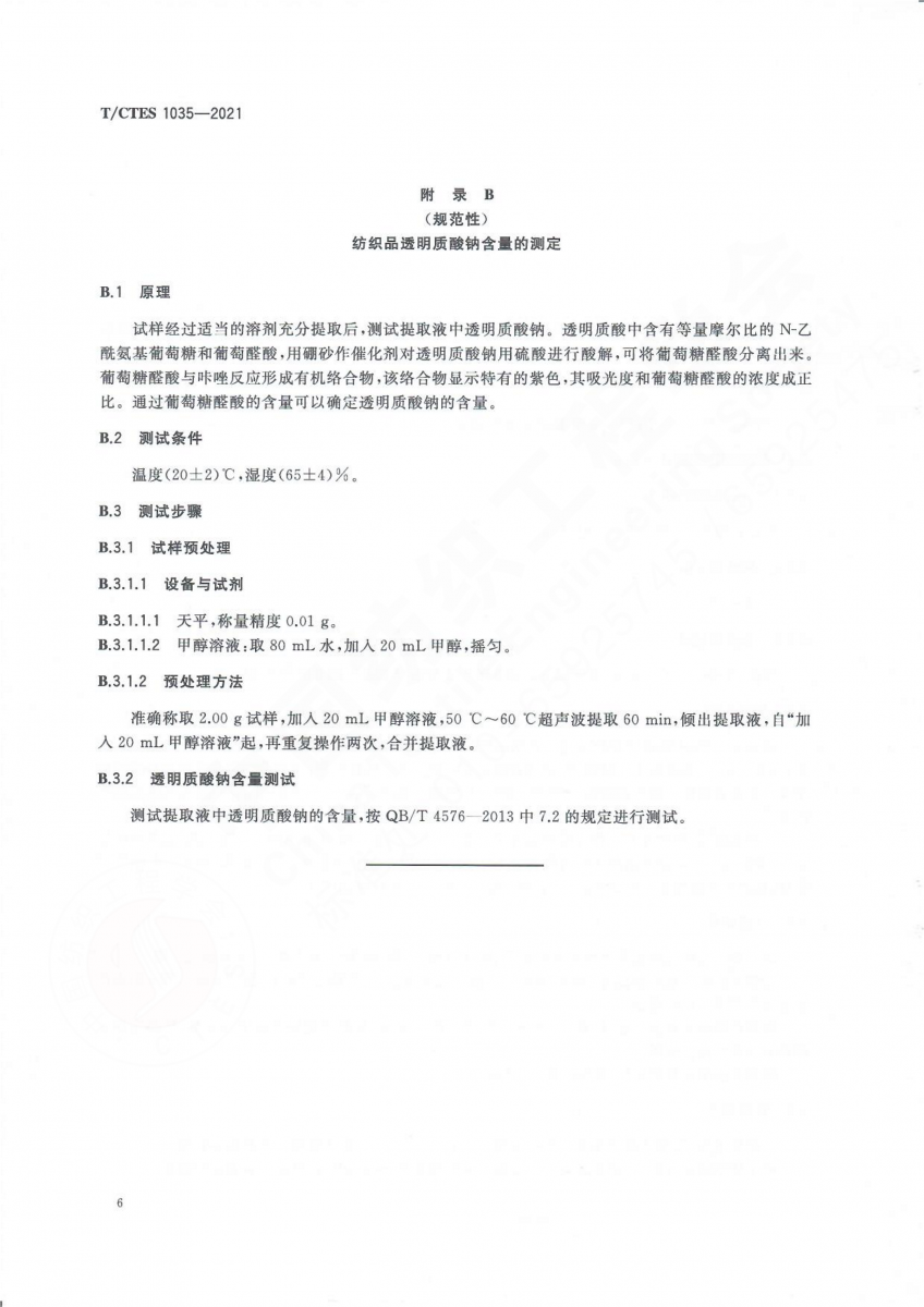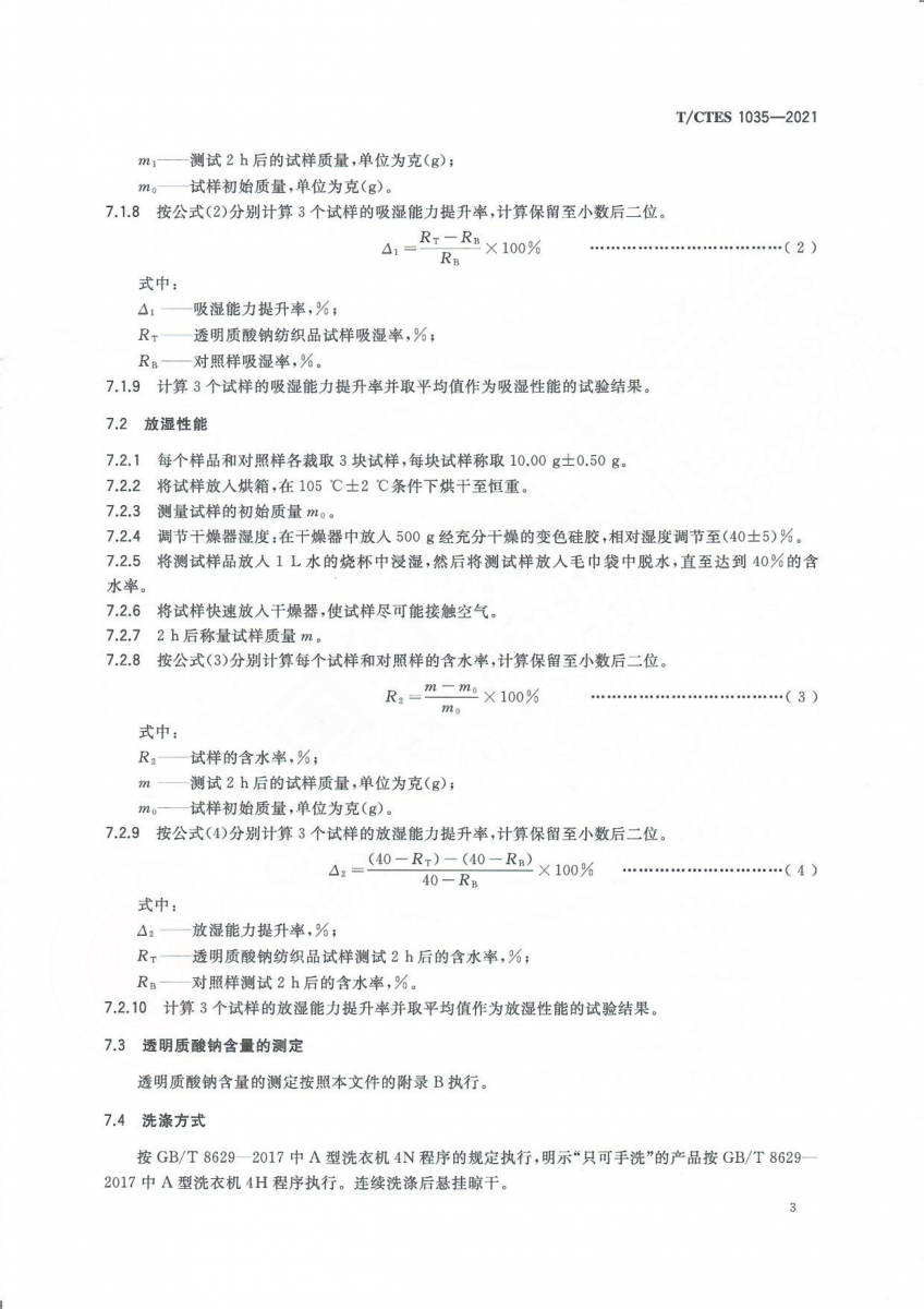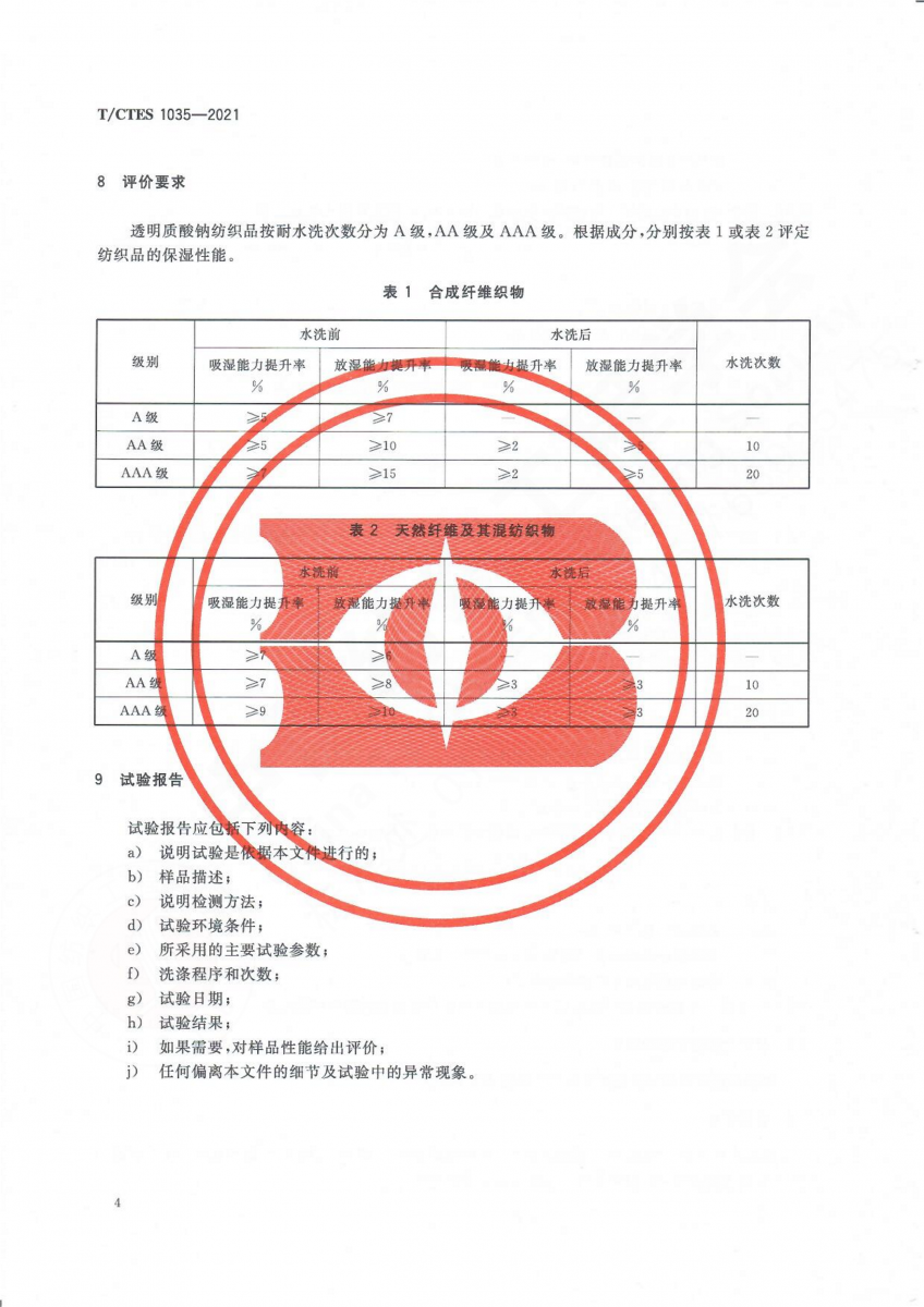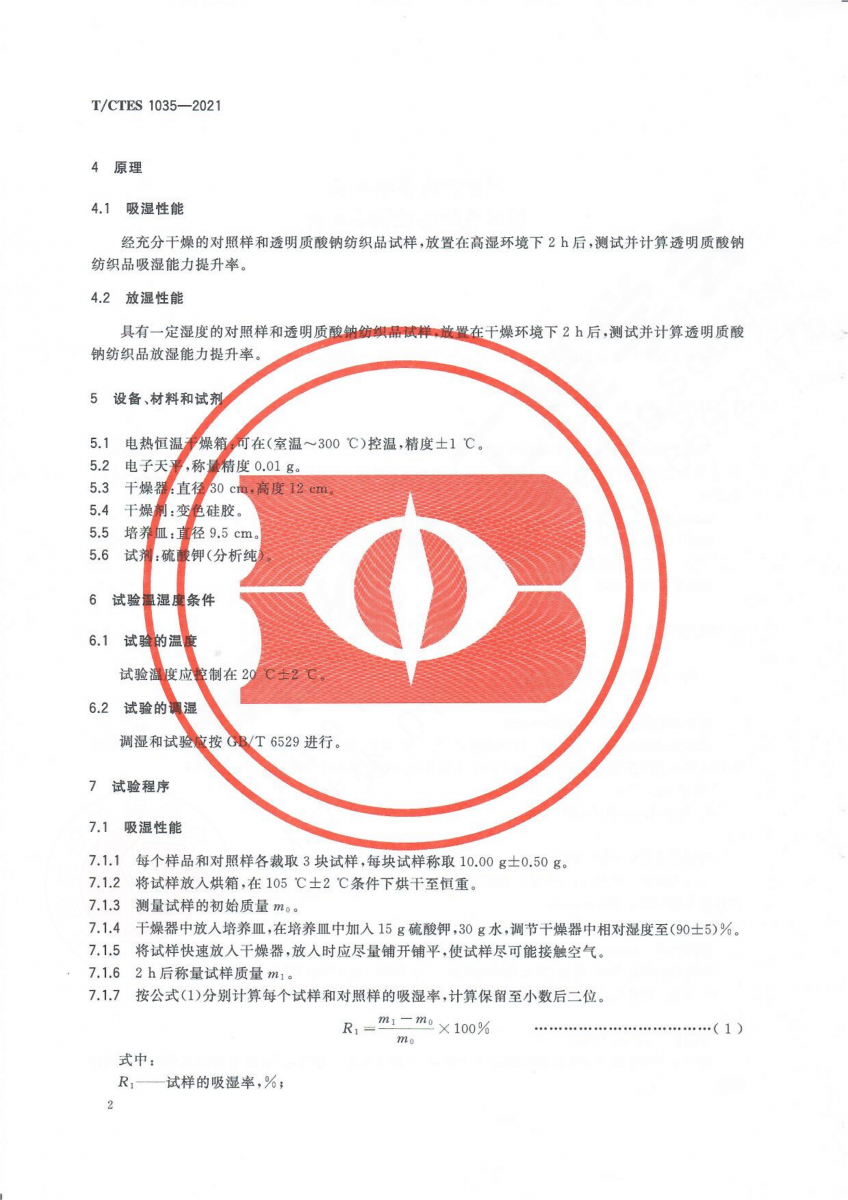 T/CTES 1035-2021 透明質酸鈉紡織品 保濕性能的檢測與評價