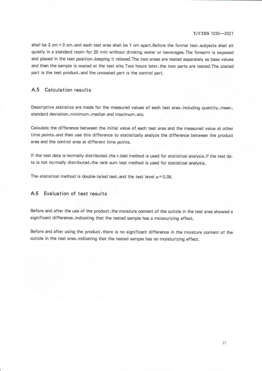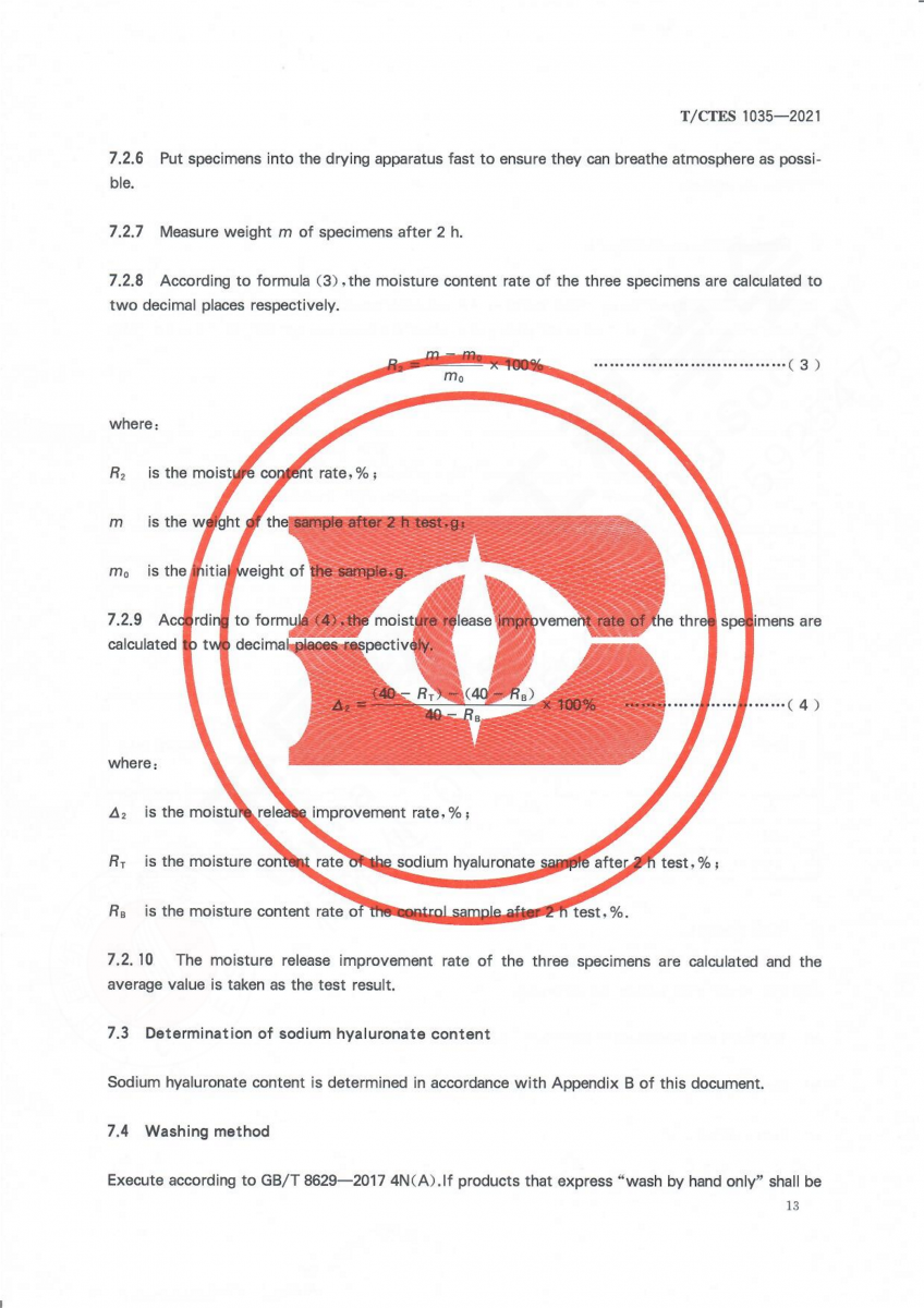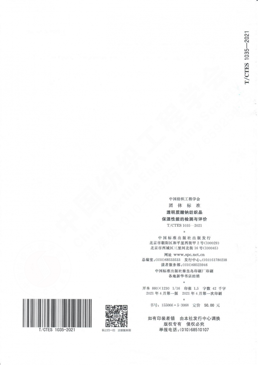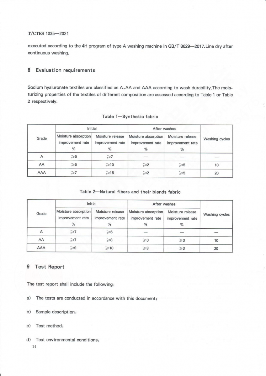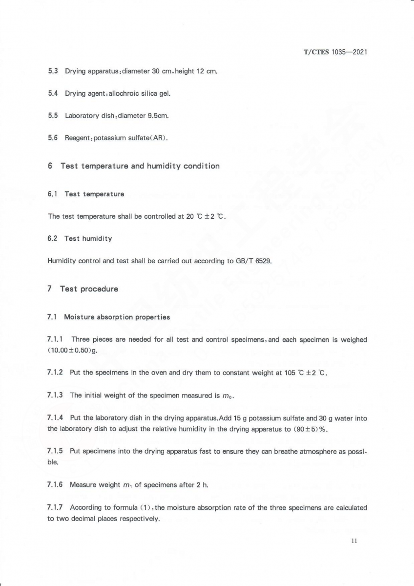 T/CTES 1035-2021 透明質酸鈉紡織品 保濕性能的檢測與評價