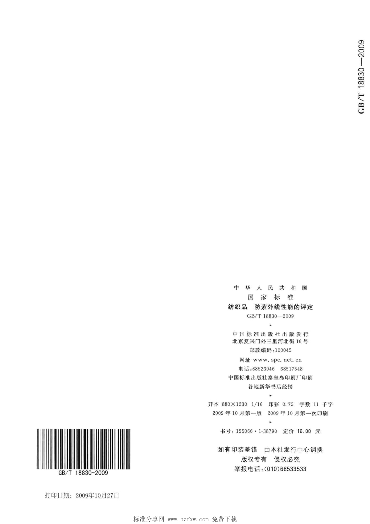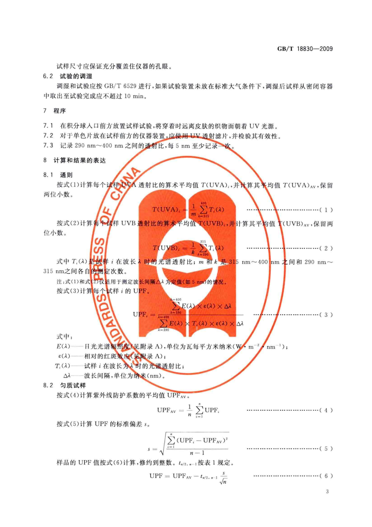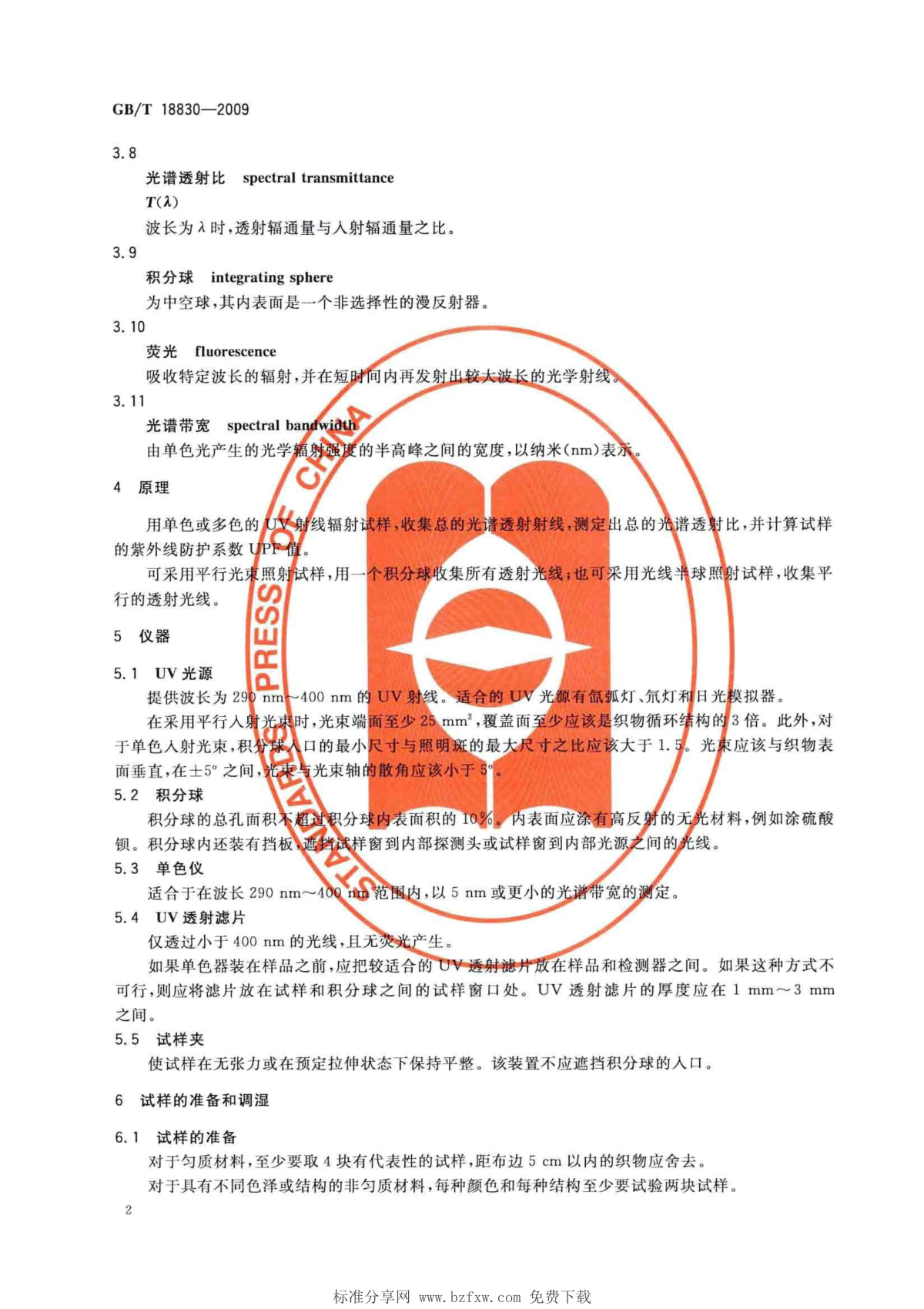 GB/T 18830-2009 紡織品 防紫外線性能的評定