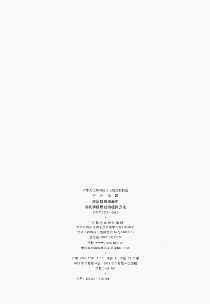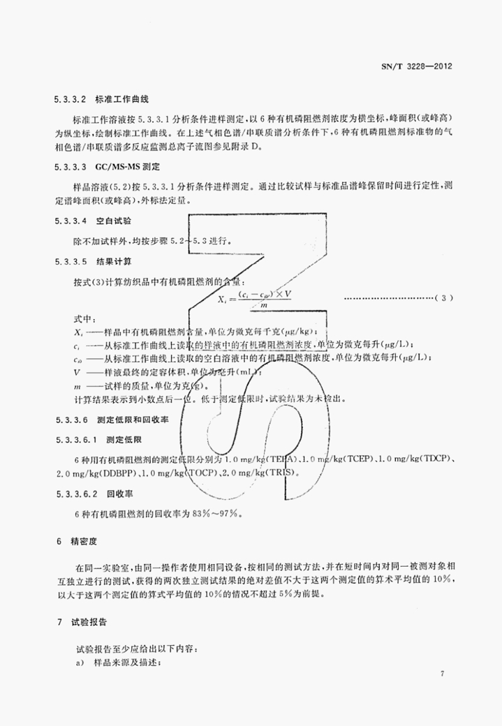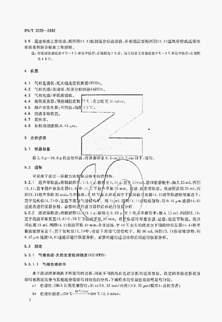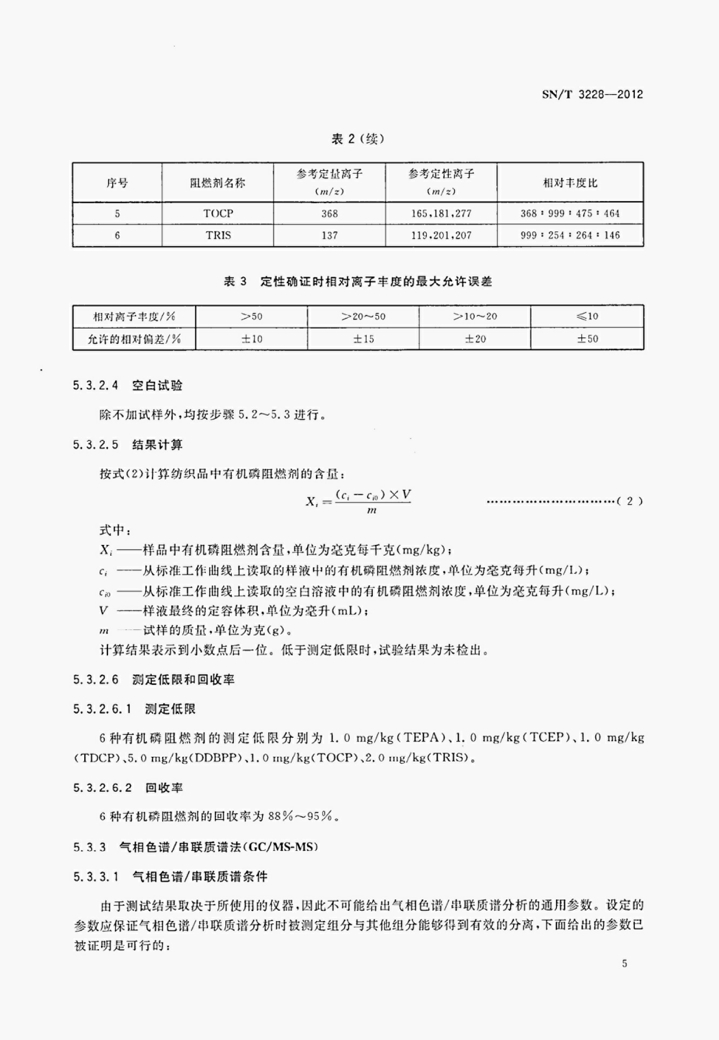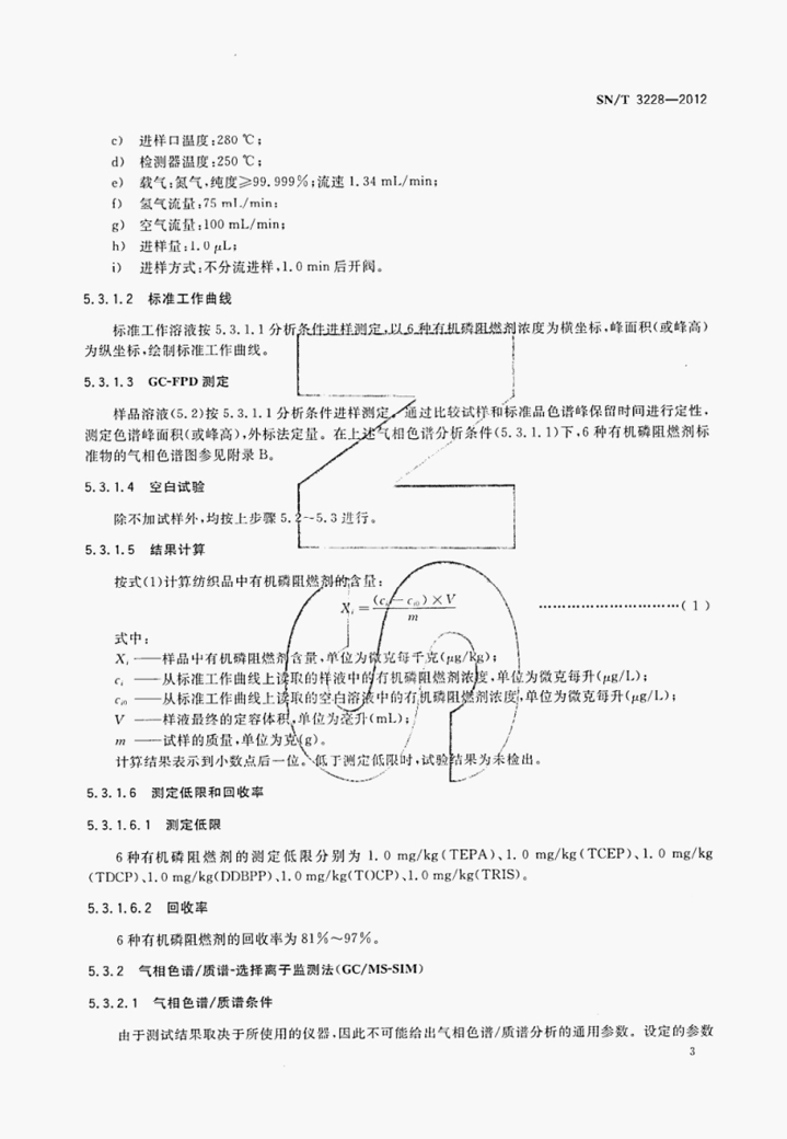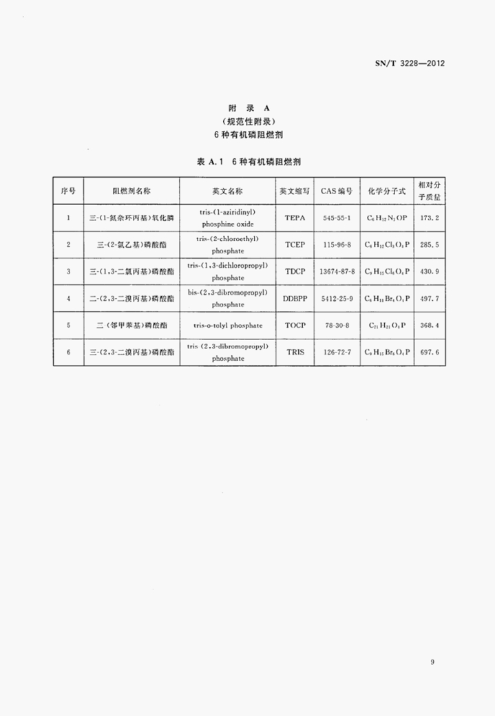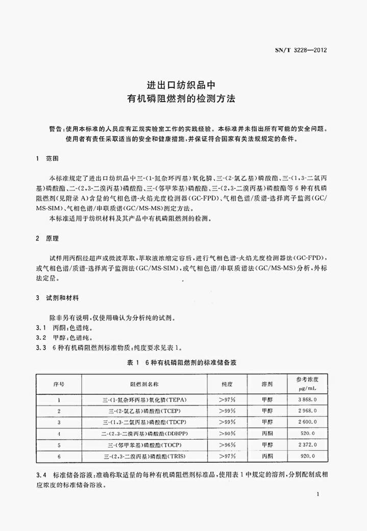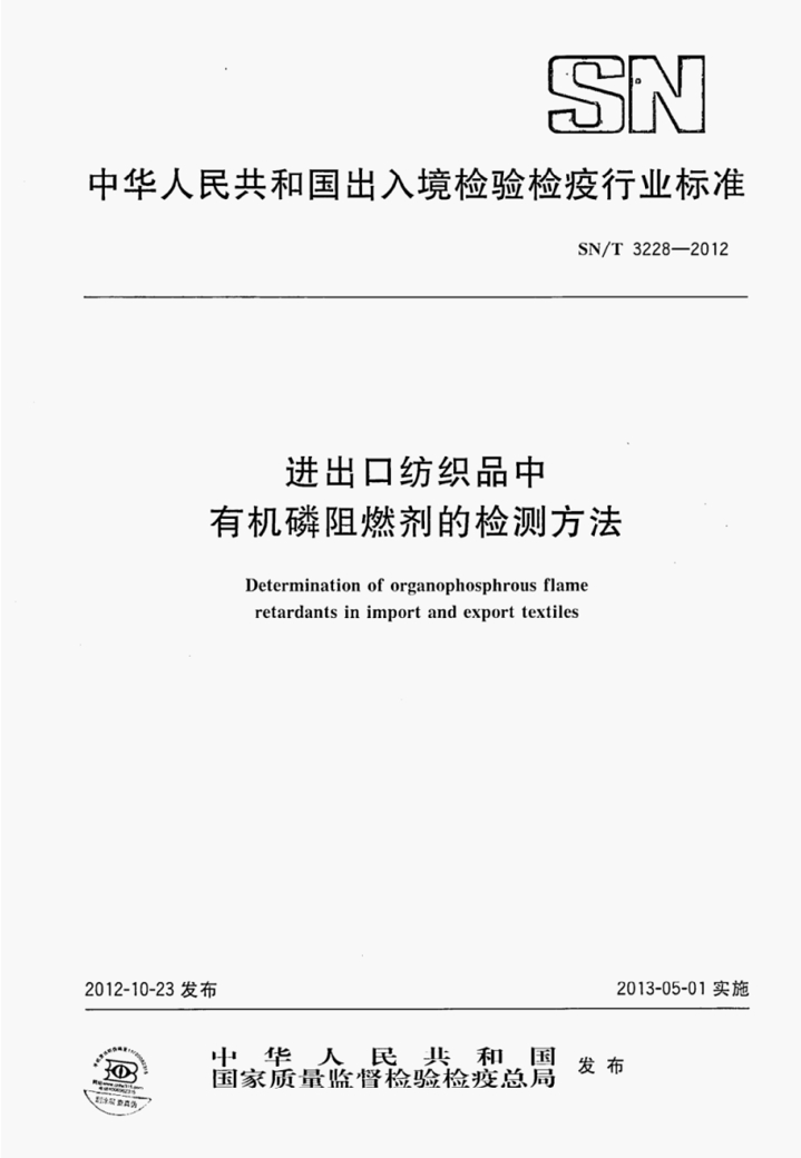 SN/T 3228-2012 進出口紡織品中有機磷阻燃劑的檢測方法