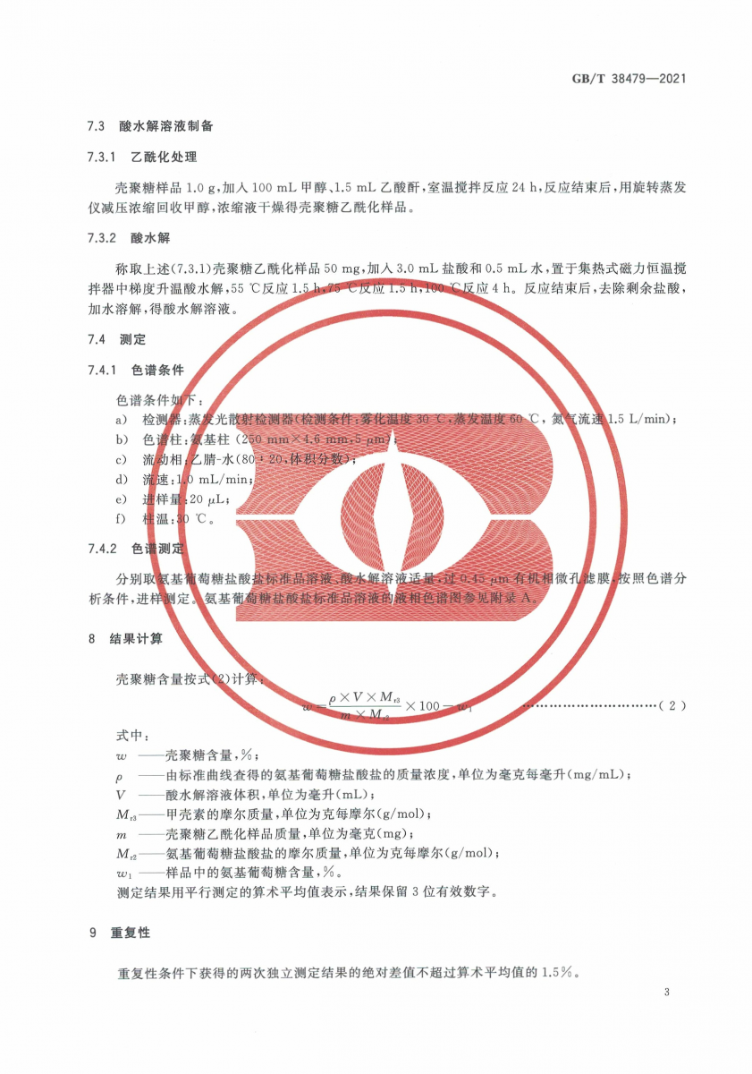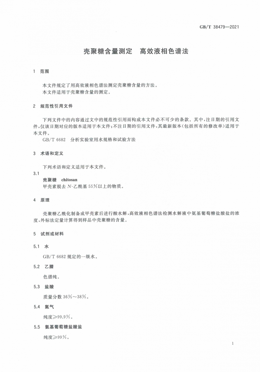 GB/T 38479-2021 殼聚糖含量測定 高效液相色譜法