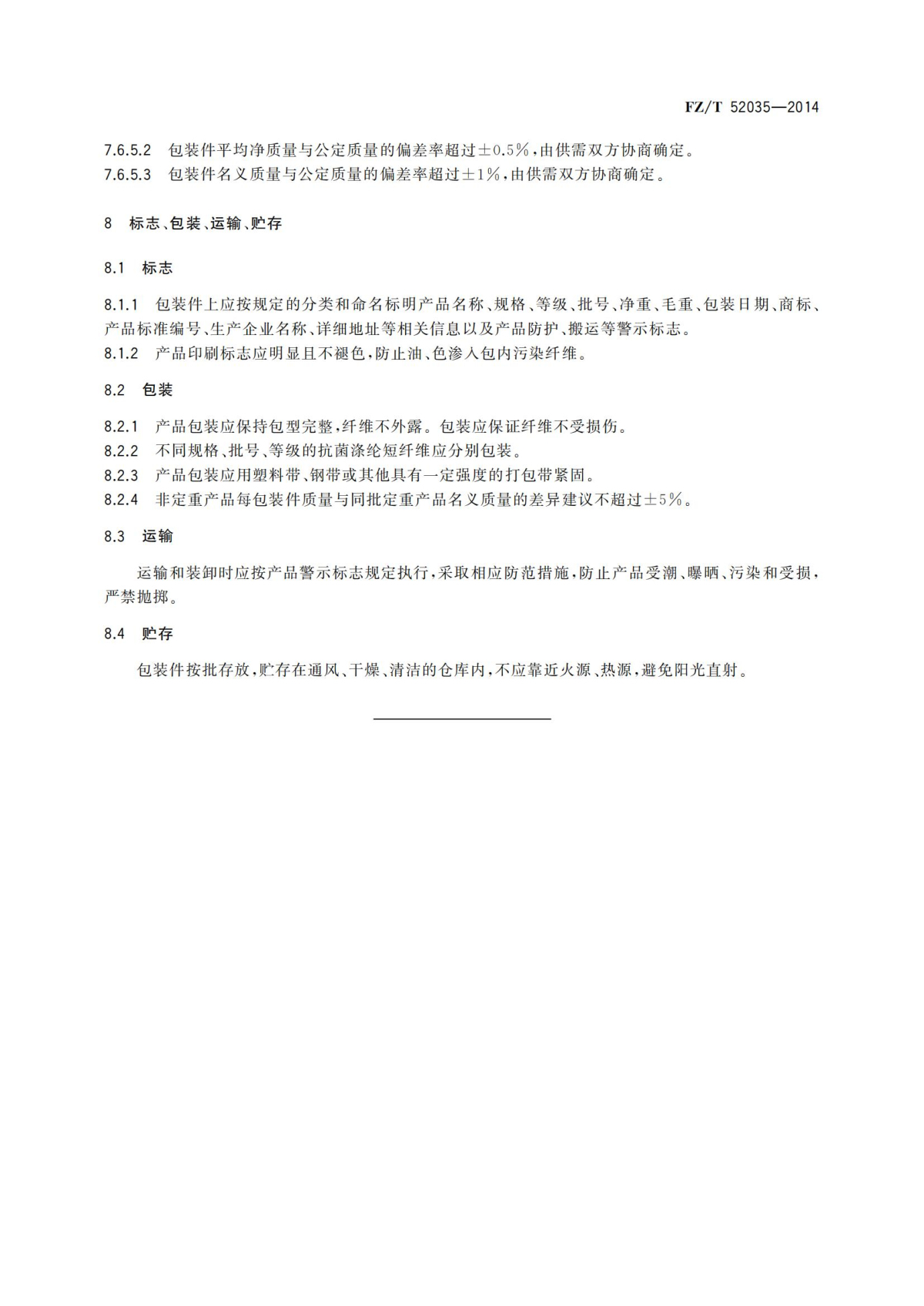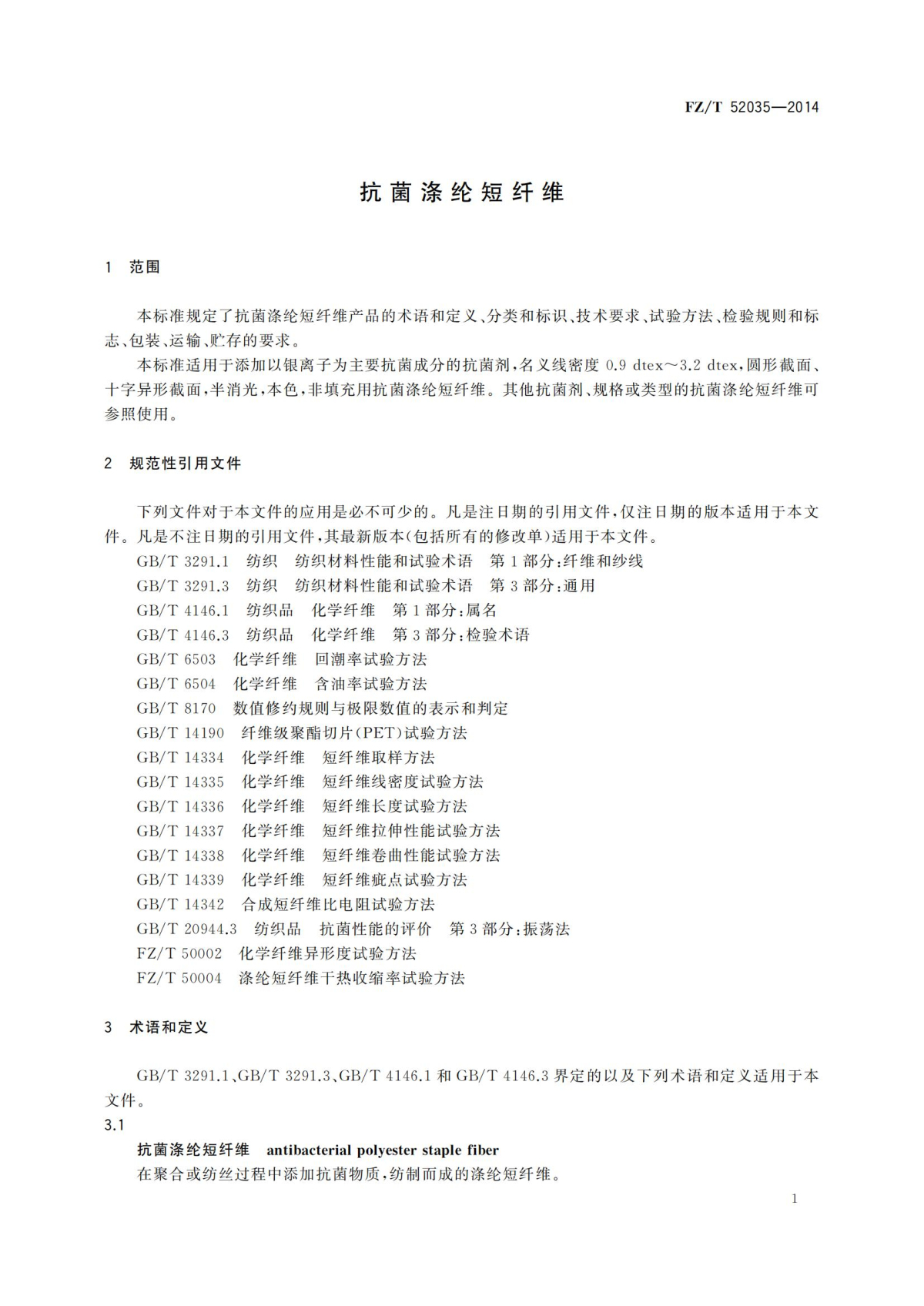 FZ/T 52035-2014 抗菌滌綸短纖維