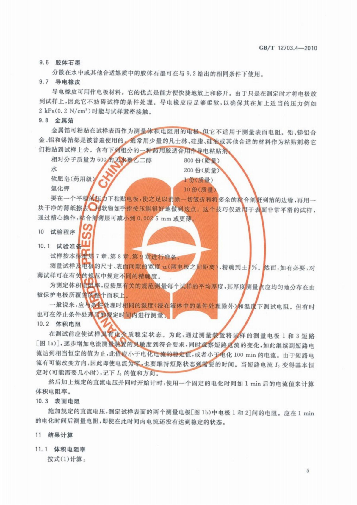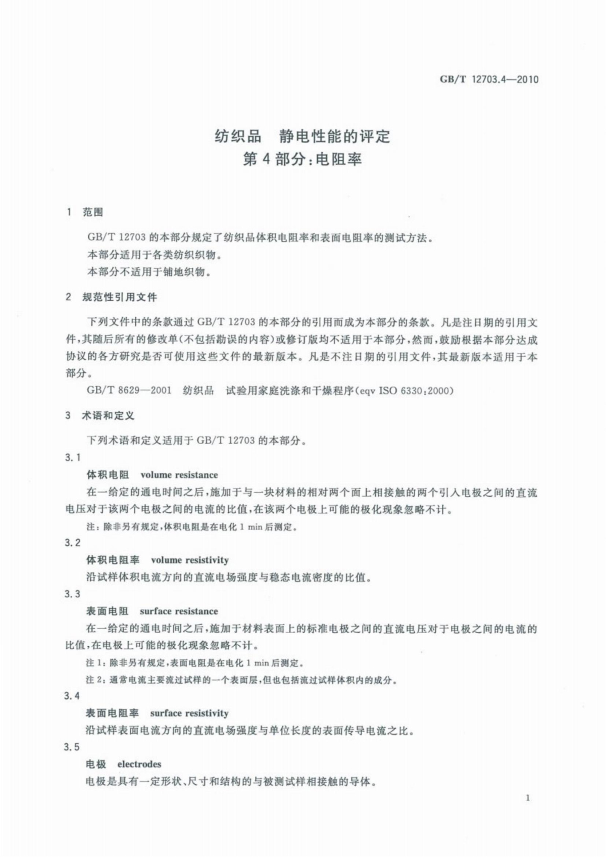 GB/T 12703.4-2010 紡織品 靜電性能的評定 第4部分:電阻率