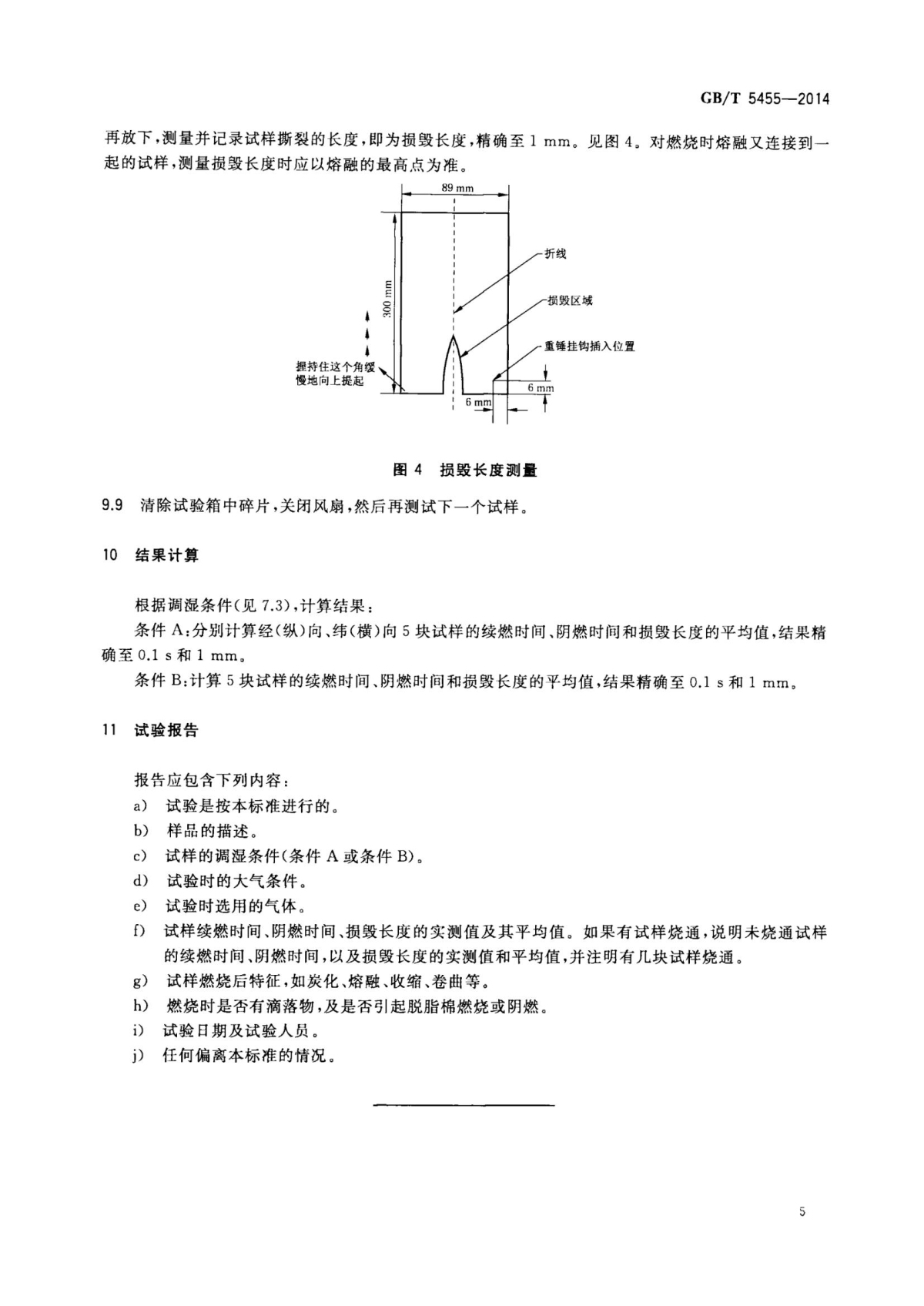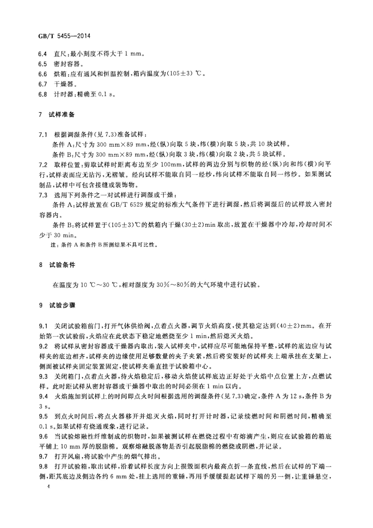 GB/T 5455-2014 紡織品 燃燒性能 垂直方向 損毀長度、陰燃和續燃時間的測定