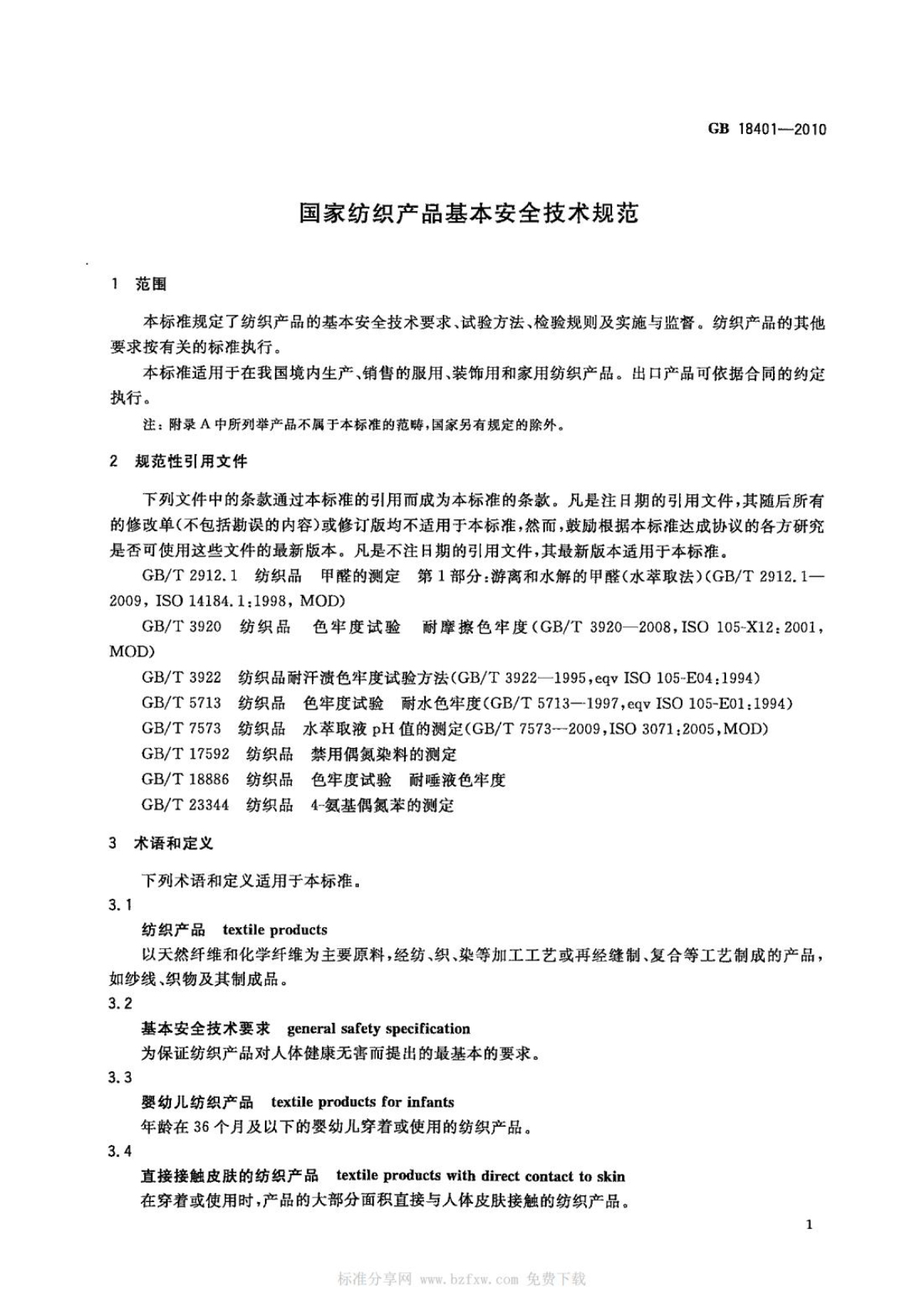 GB 18401-2010 國家紡織產(chǎn)品基本安全技術(shù)規(guī)范