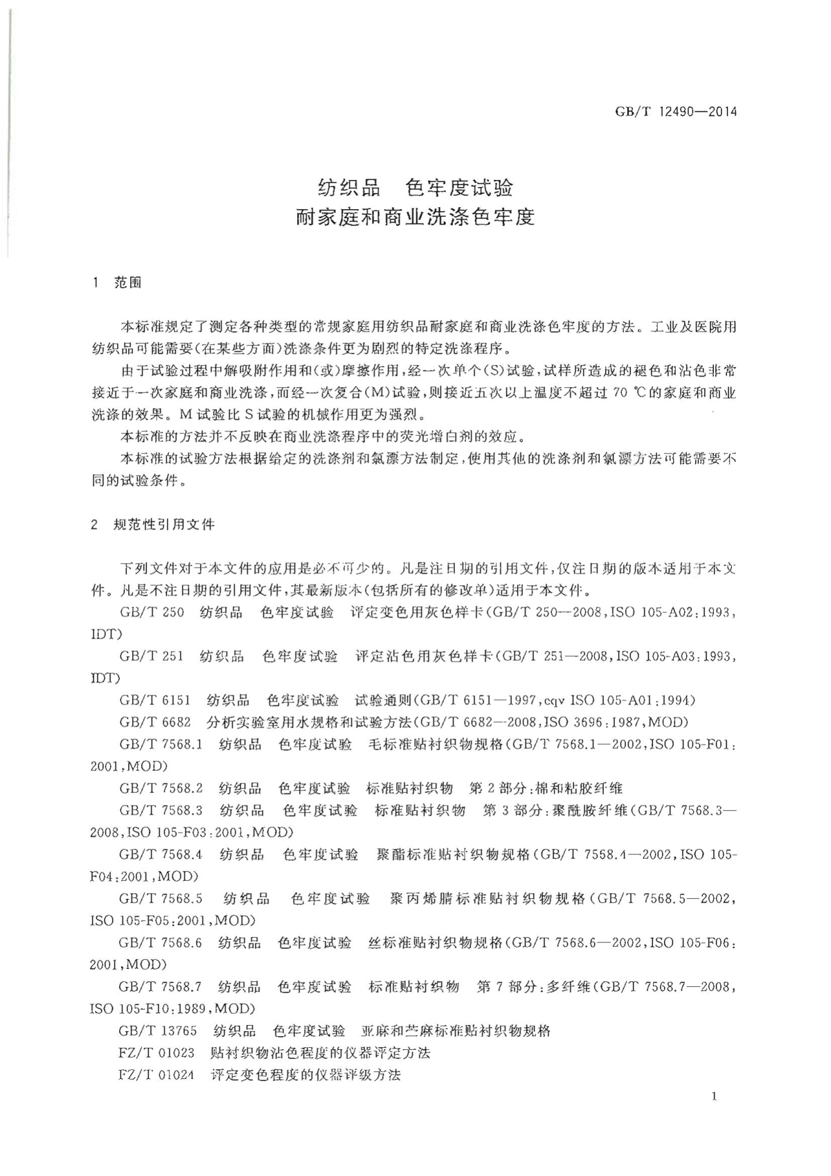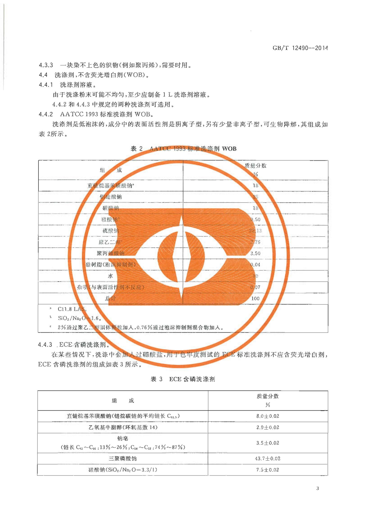 GB/T 12490-2014 紡織品 色牢度試驗(yàn) 耐家庭和商業(yè)洗滌色牢度
