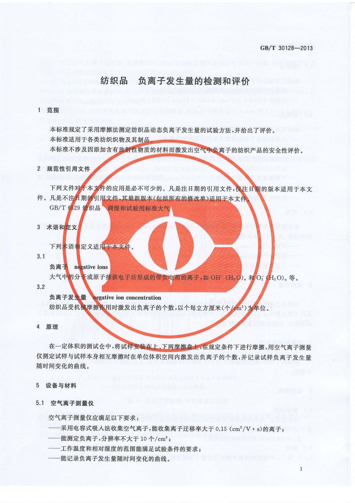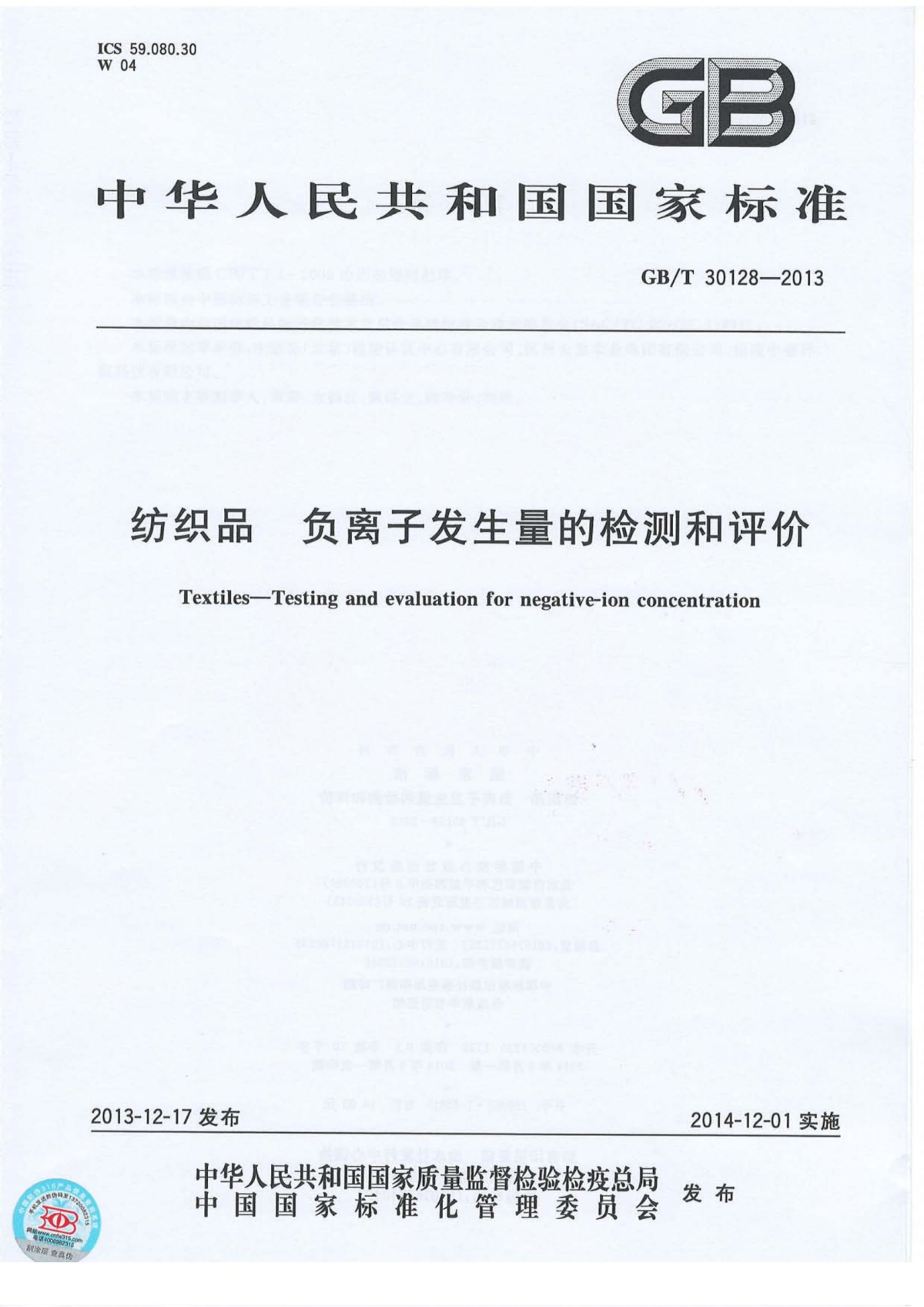 GB/T 30128-2013 紡織品 負離子發生量的檢測和評價