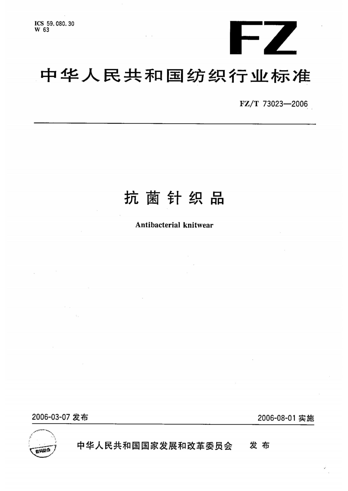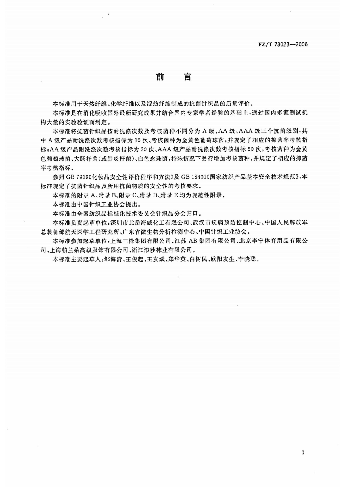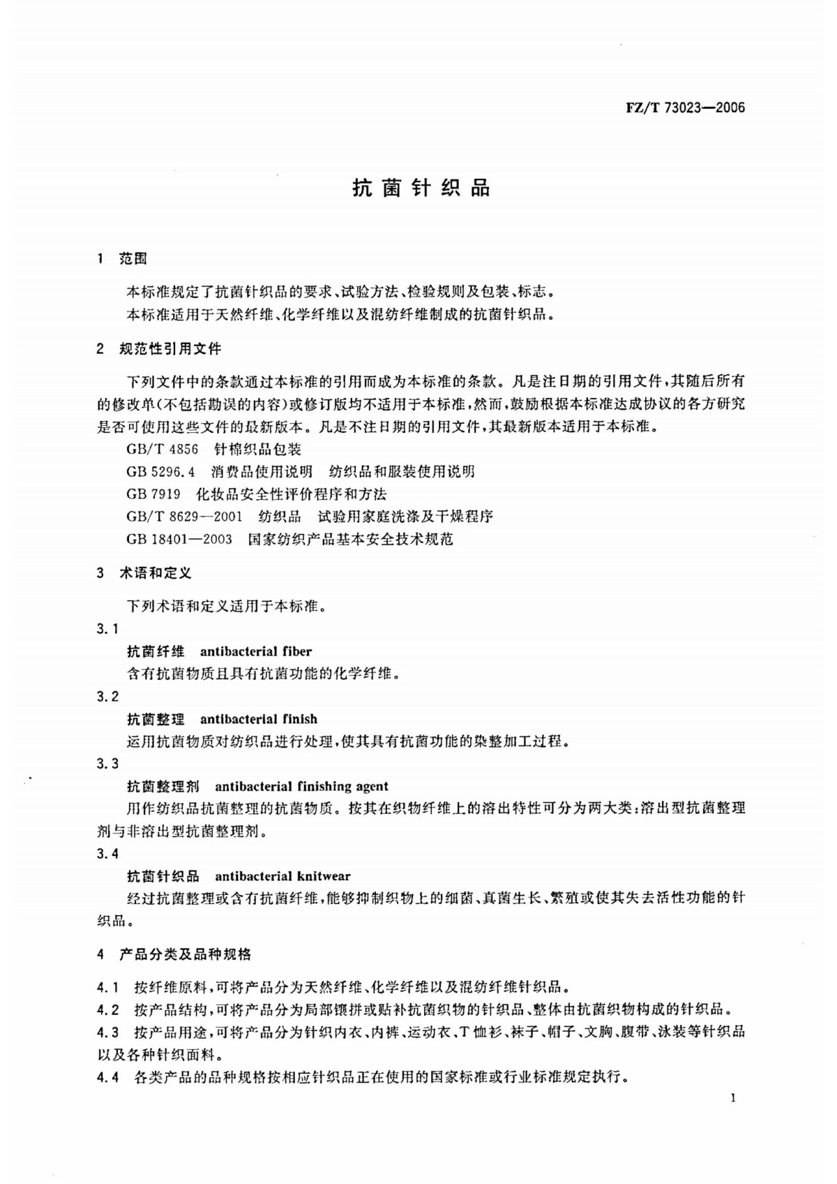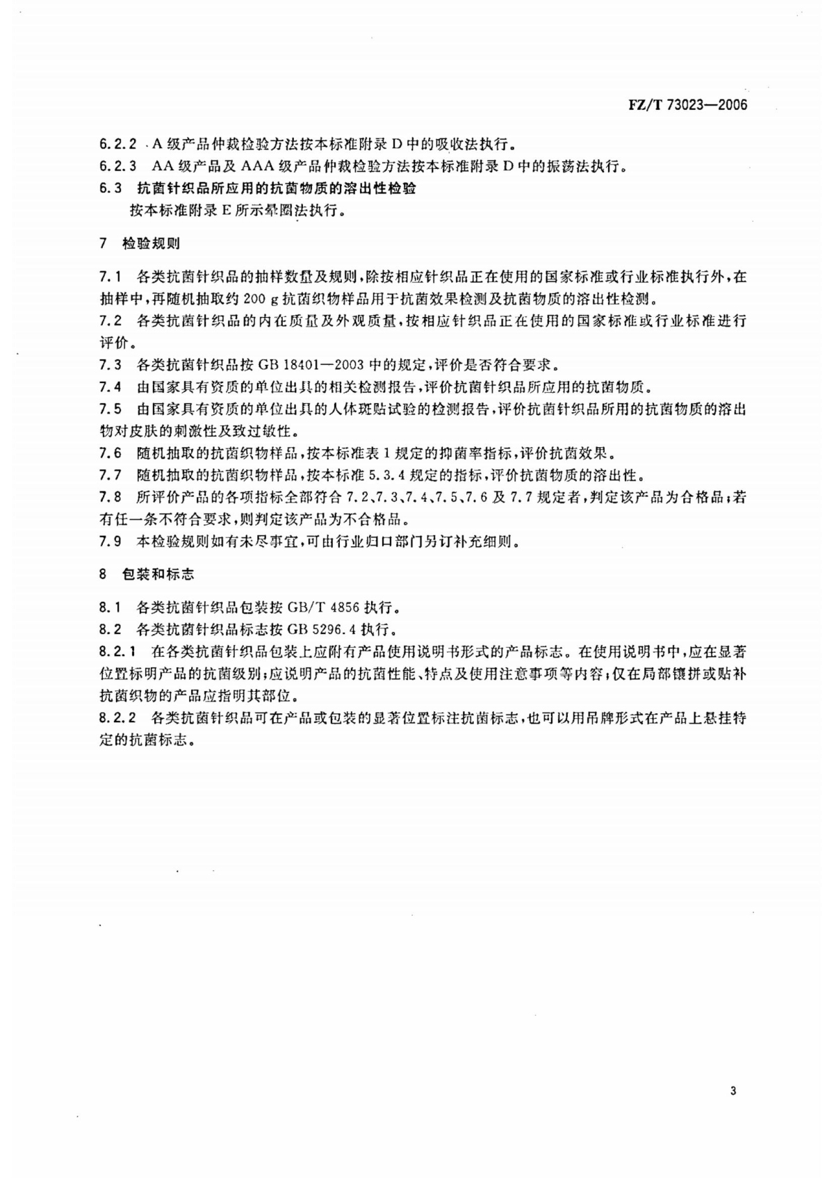 FZ/T 73023-2006 抗菌針織品