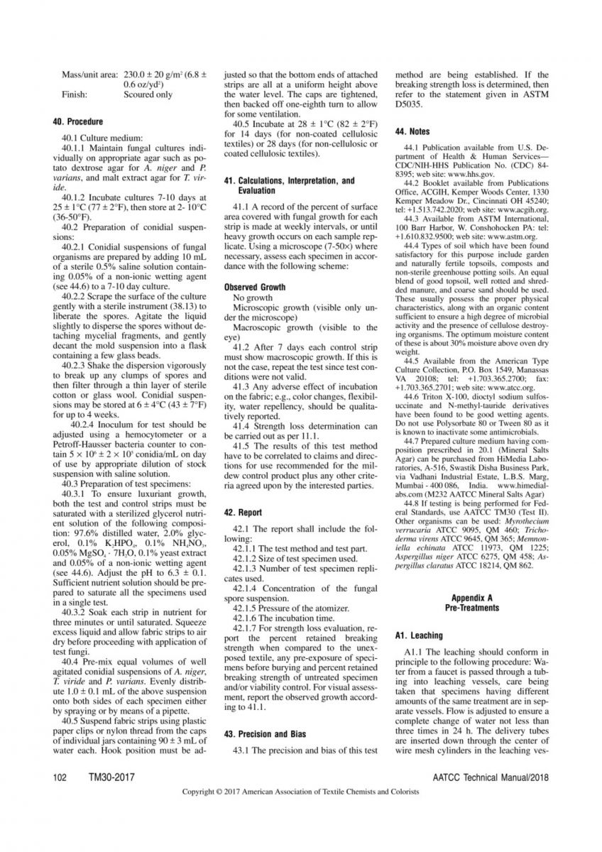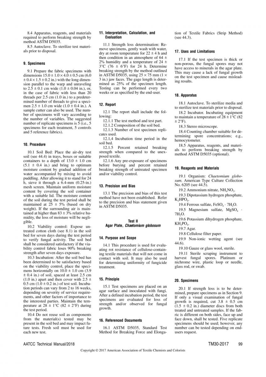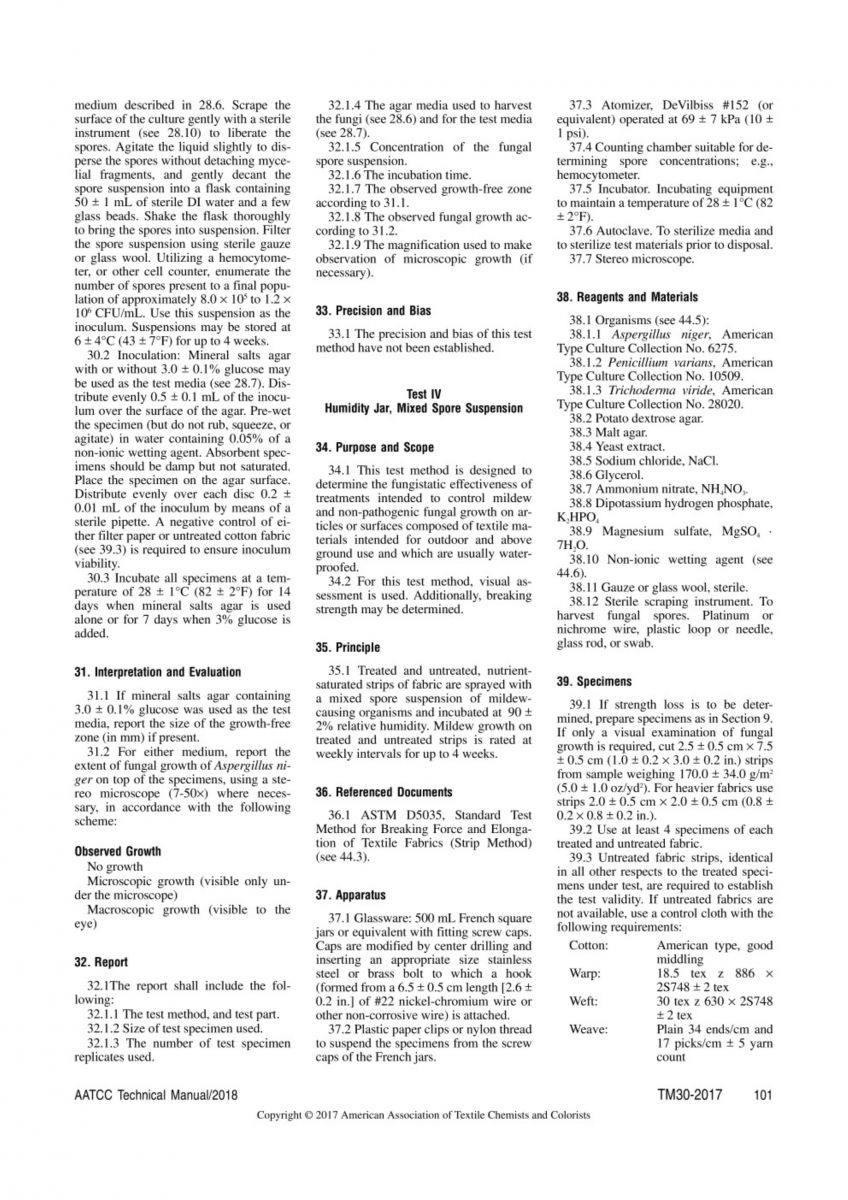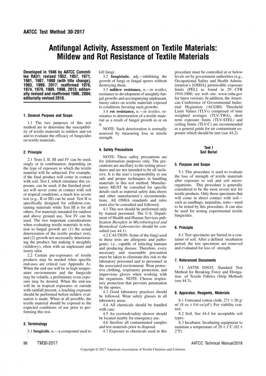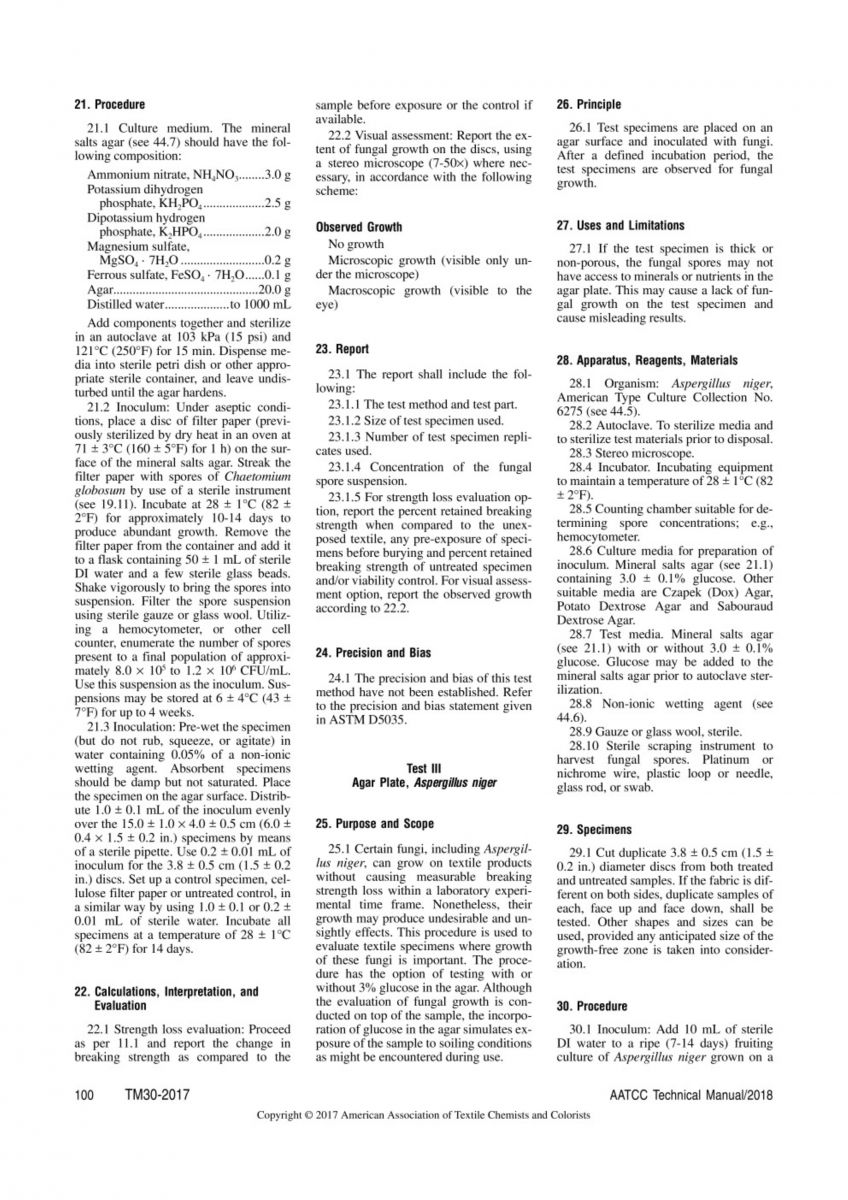 AATCC 30-2017 紡織材料的防霉活性和評價