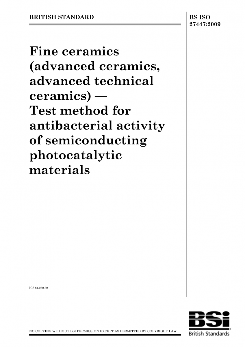 ISO 27447-2009 精細陶瓷.(高級陶瓷,高級工業陶瓷).半導體光催化材料的抗菌活性用測試方法