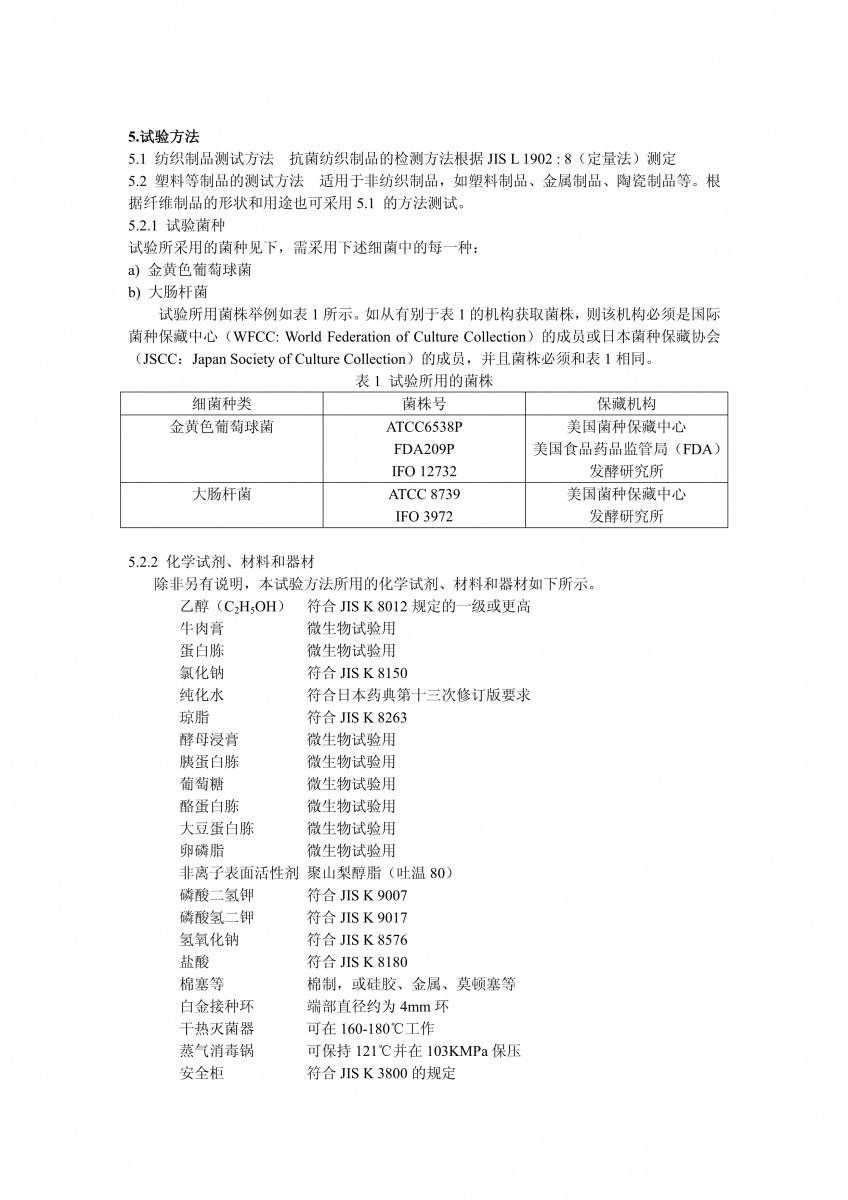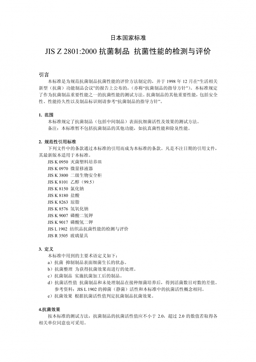 JIS Z 2801-2000 抗菌制品抗菌性能的檢測與評價