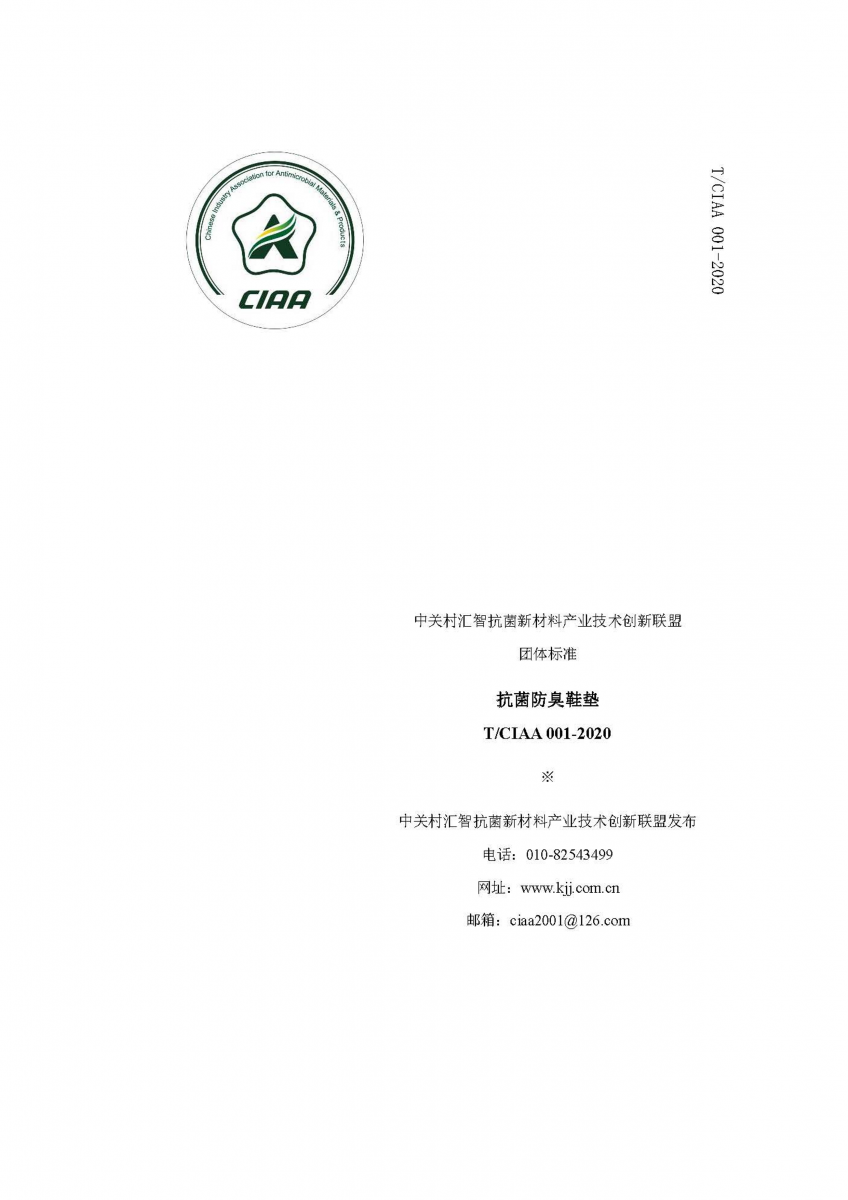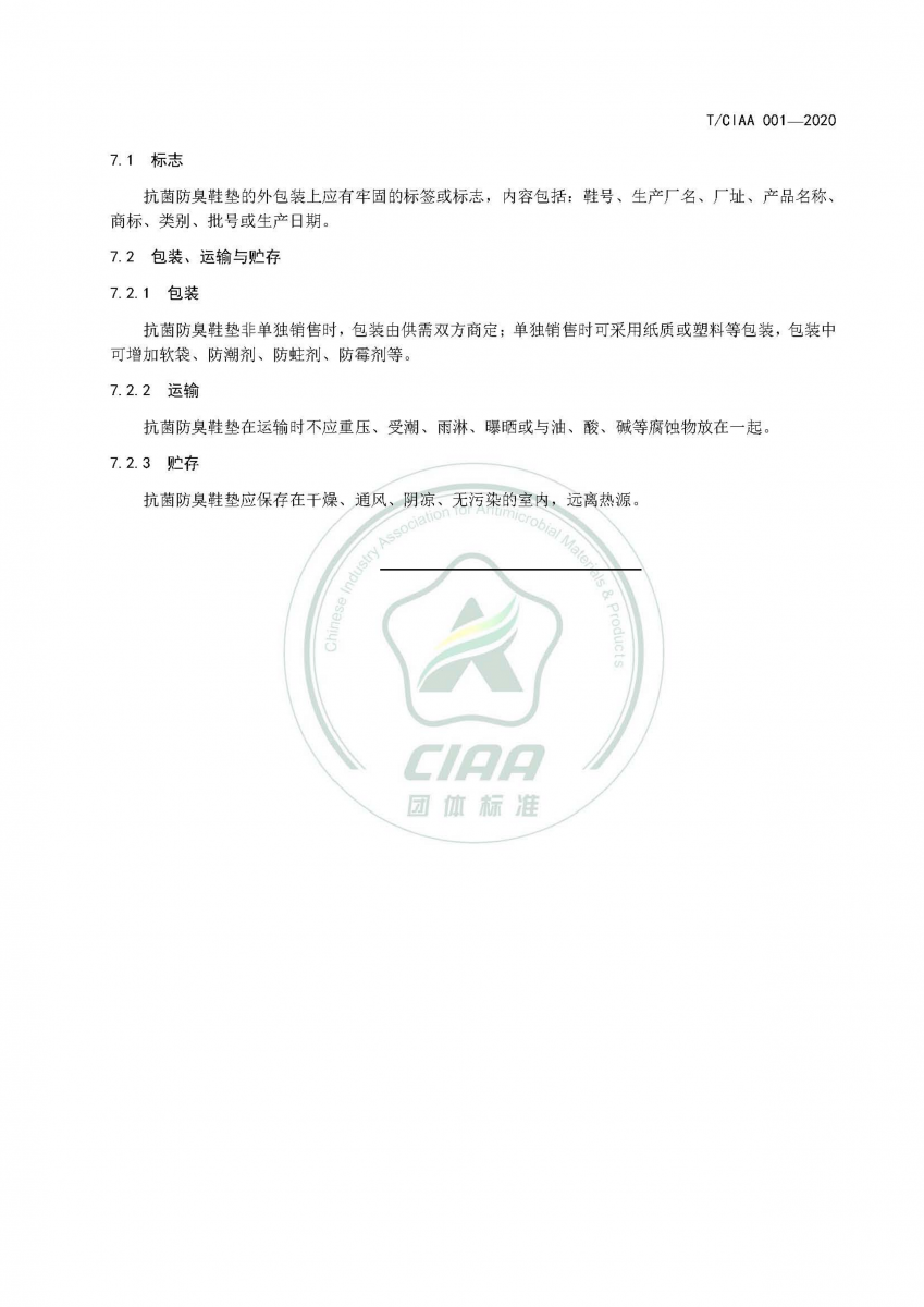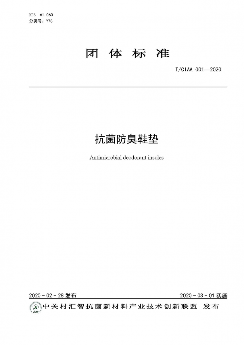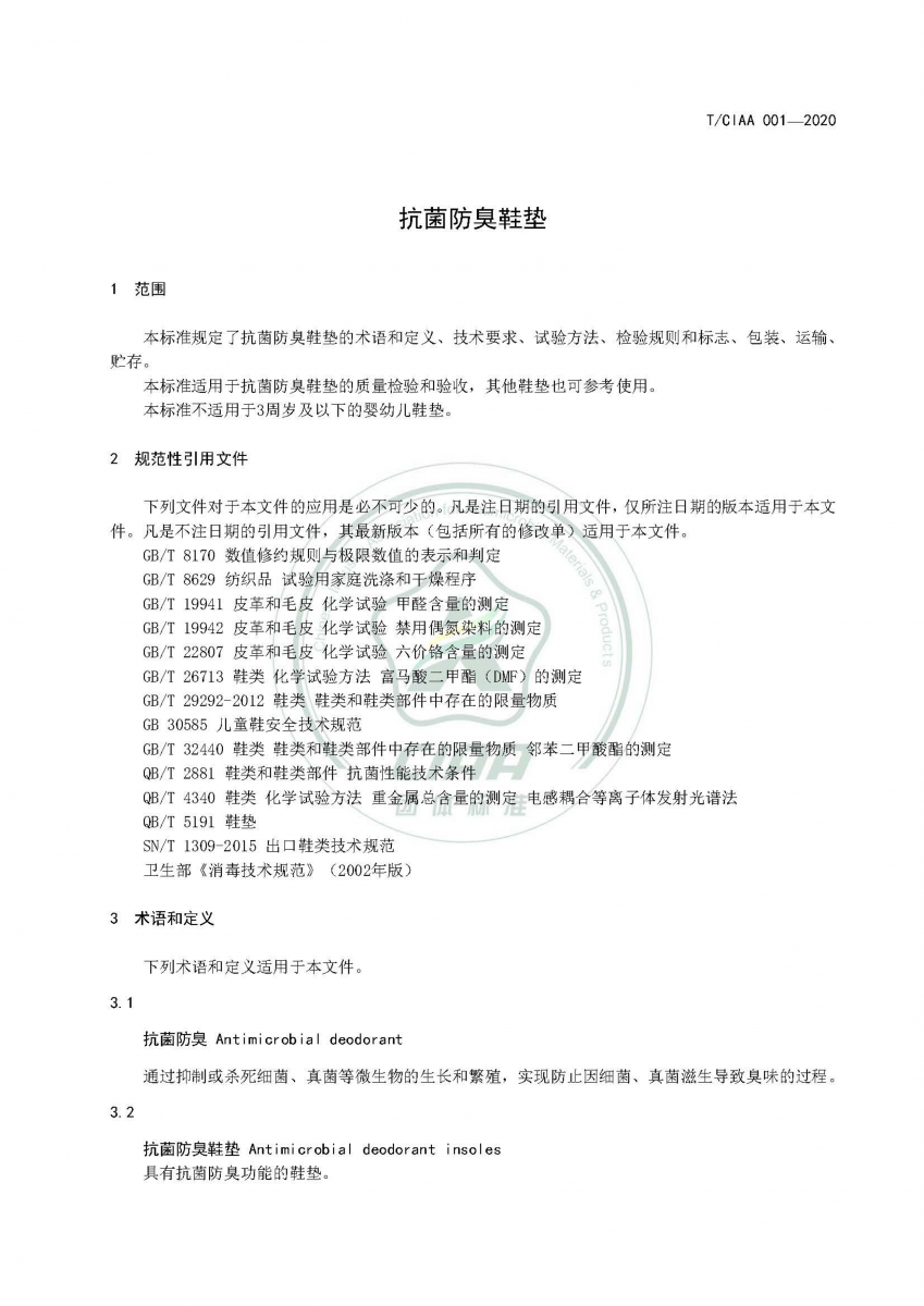 T/CIAA 001-2020 抗菌防臭鞋墊