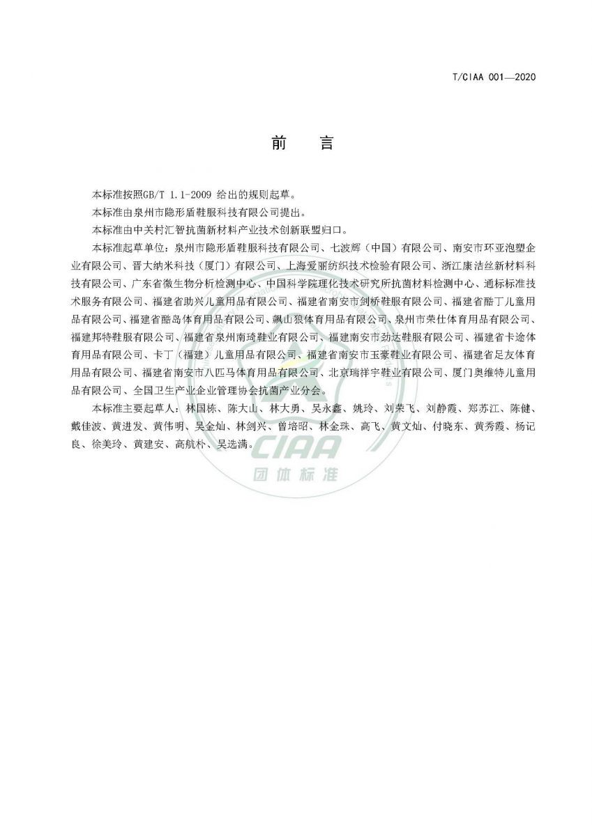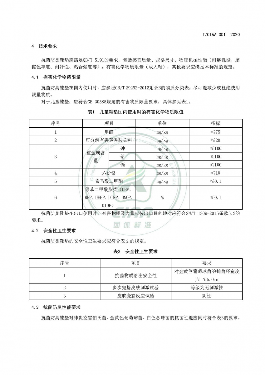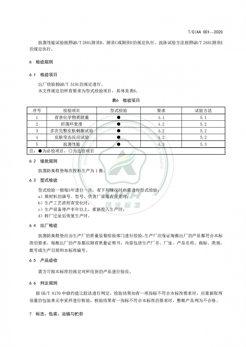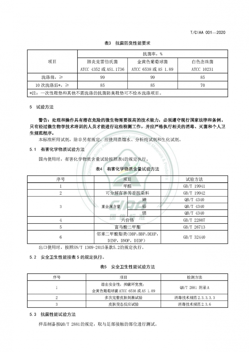 T/CIAA 001-2020 抗菌防臭鞋墊