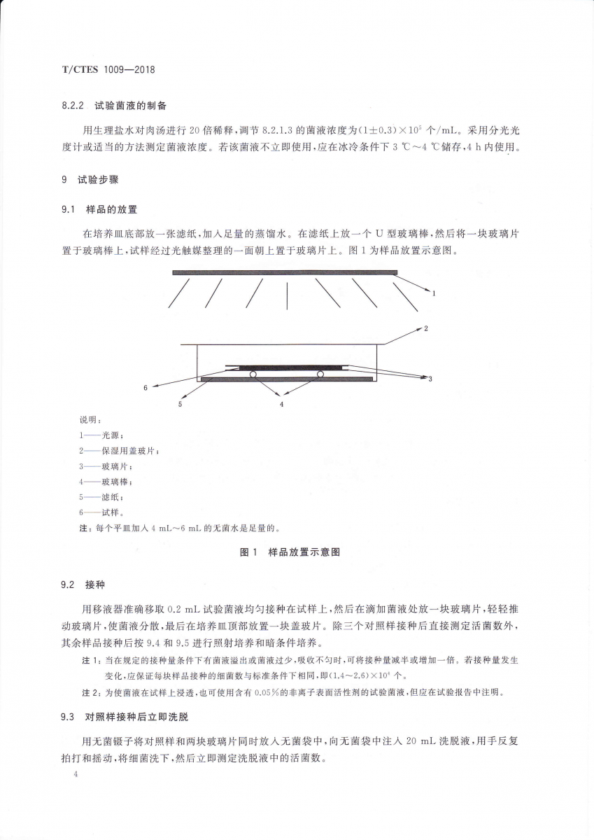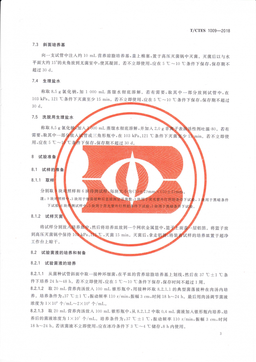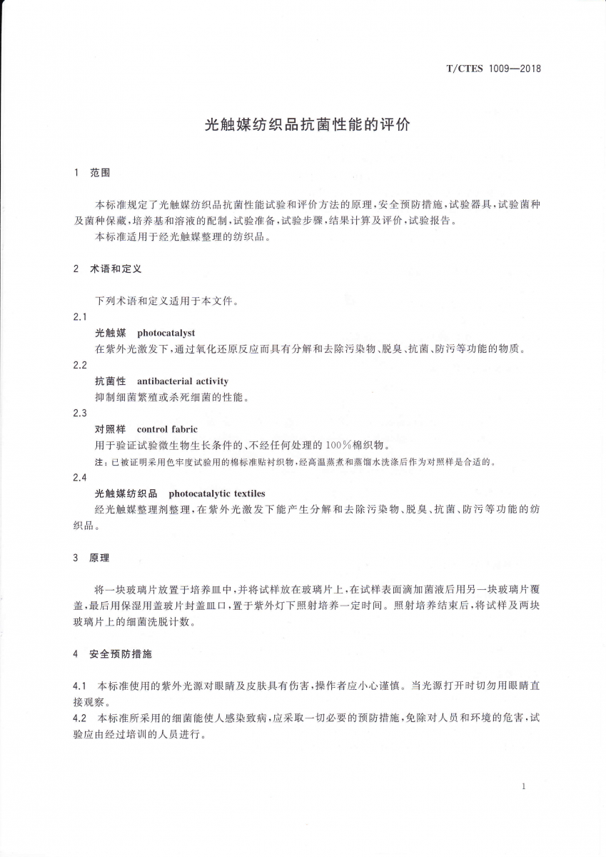 T/CTES 1009-2018 光觸媒紡織品抗菌性能的評價
