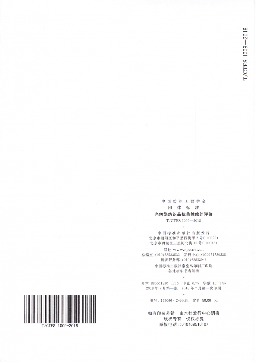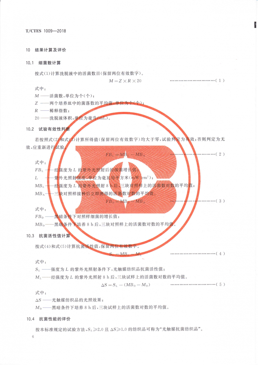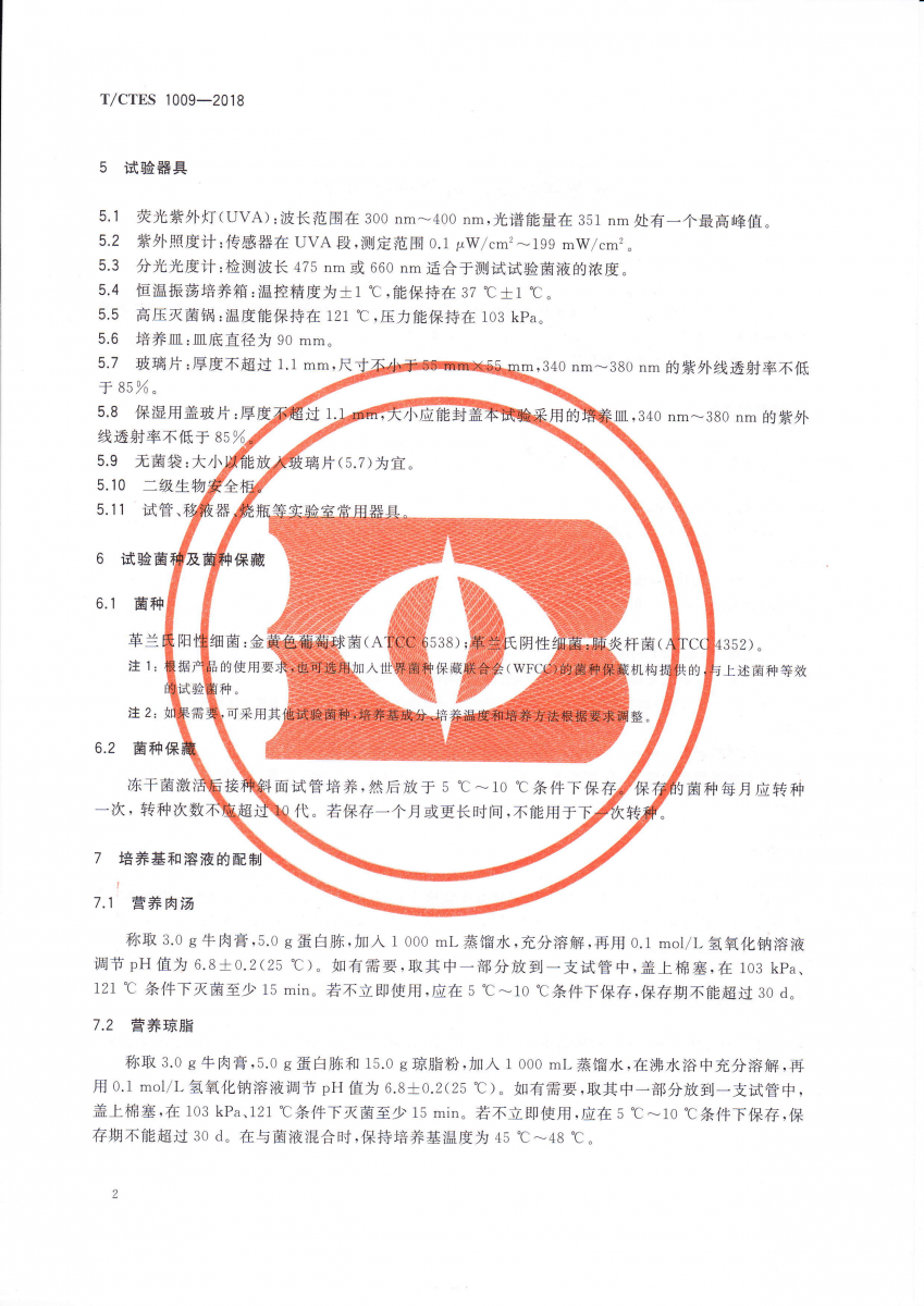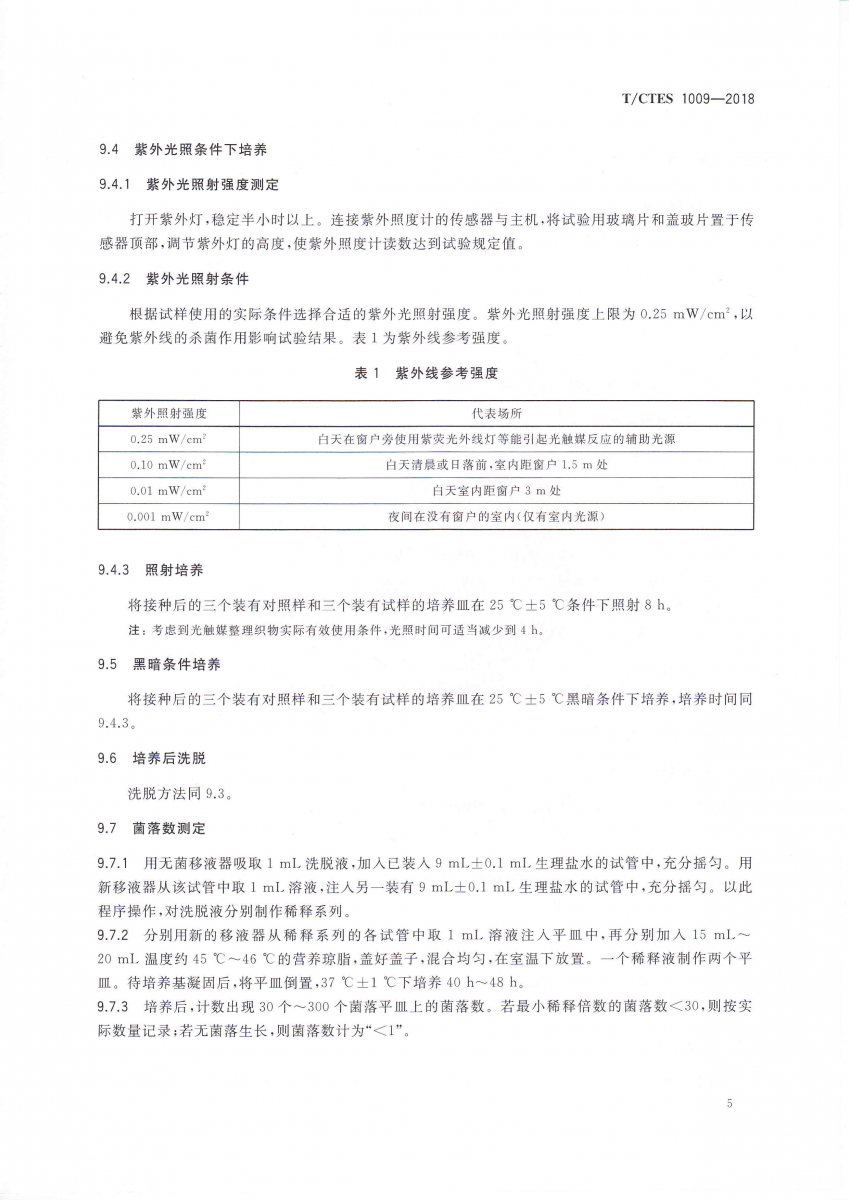 T/CTES 1009-2018 光觸媒紡織品抗菌性能的評價