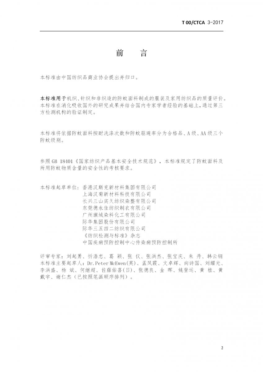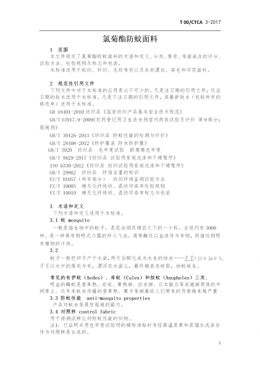 T00/CTCA3-2017 氯菊酯防蚊面料