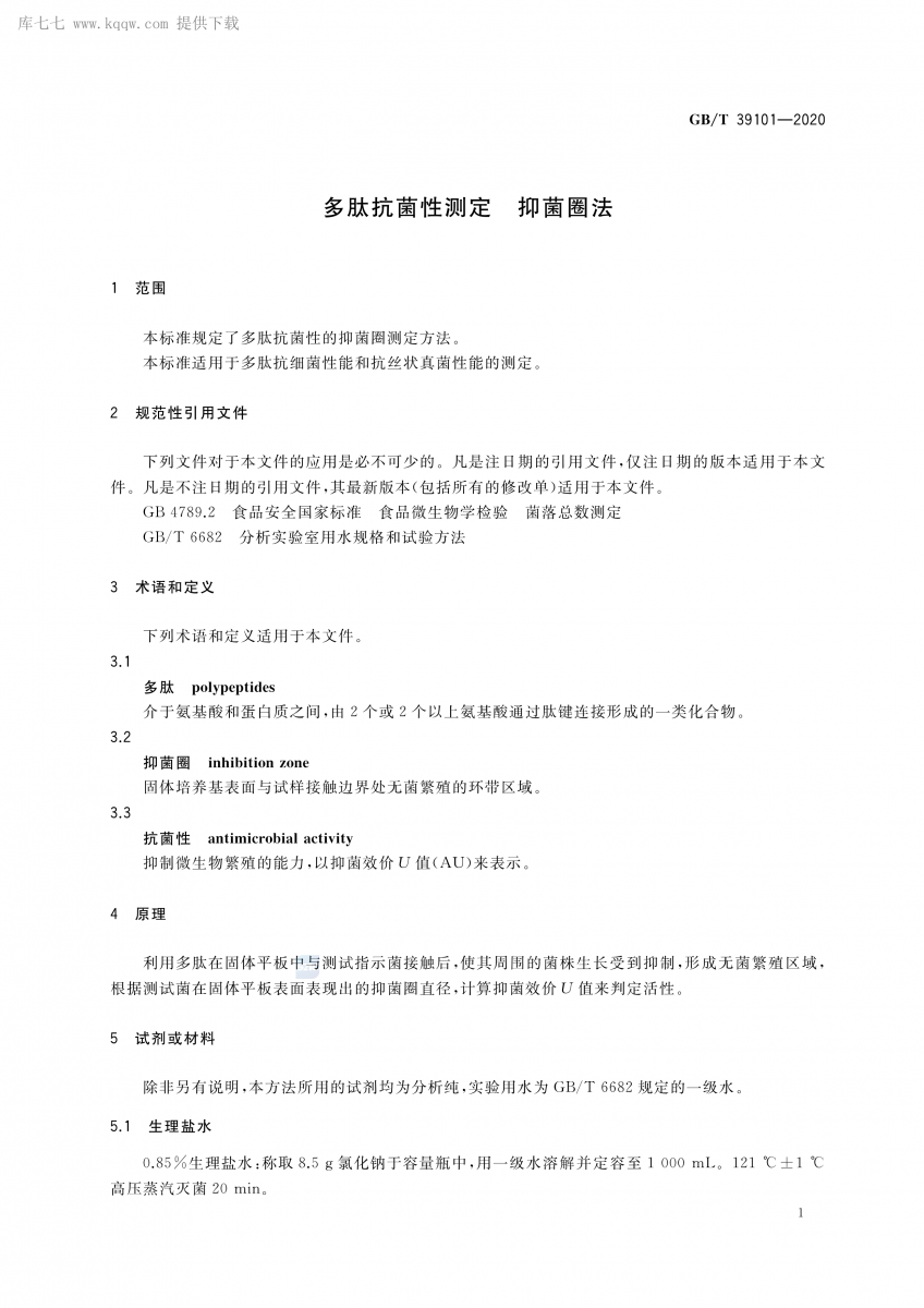GB/T 39101-2020 多肽抗菌性測定 抑菌圈法