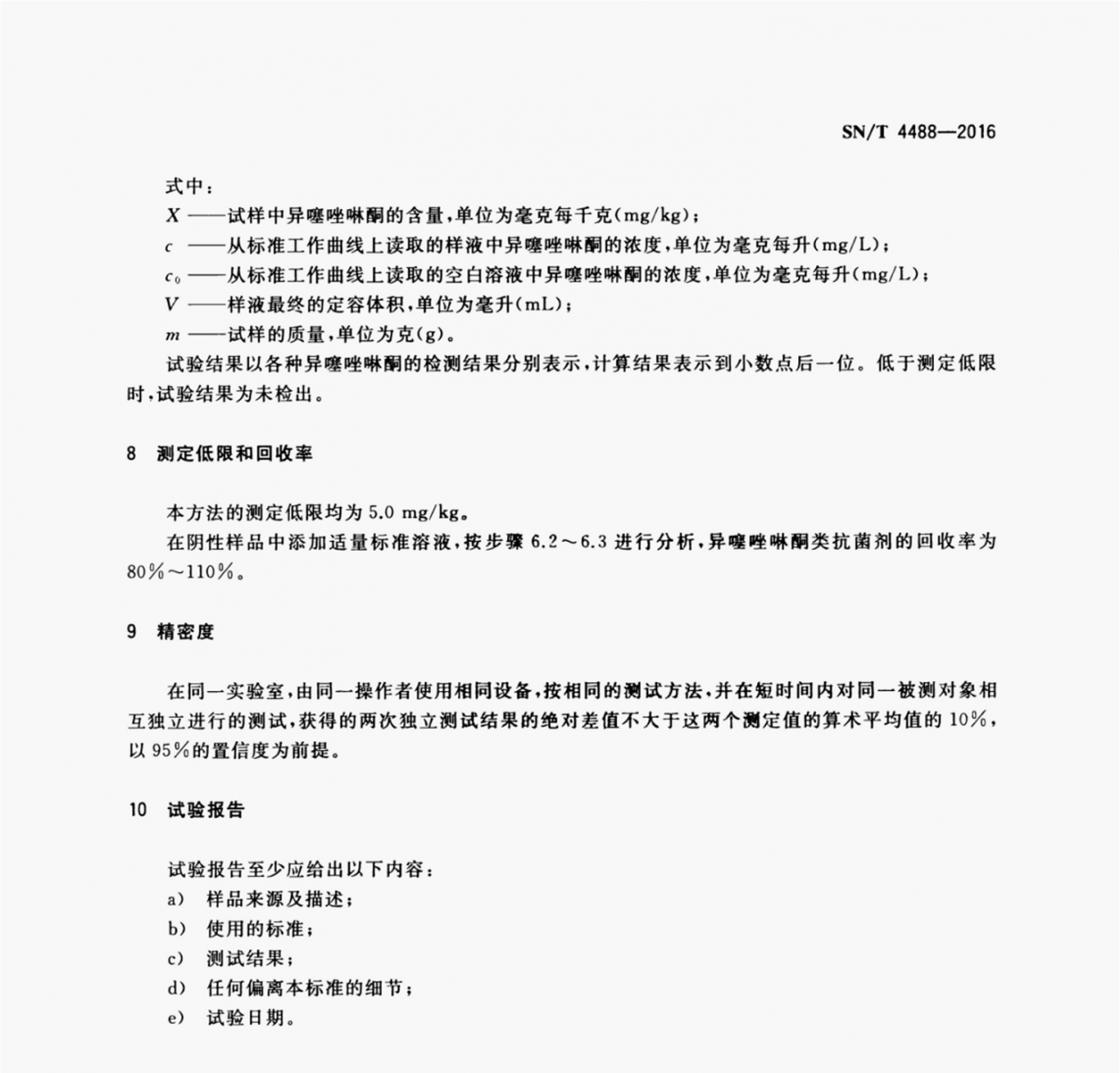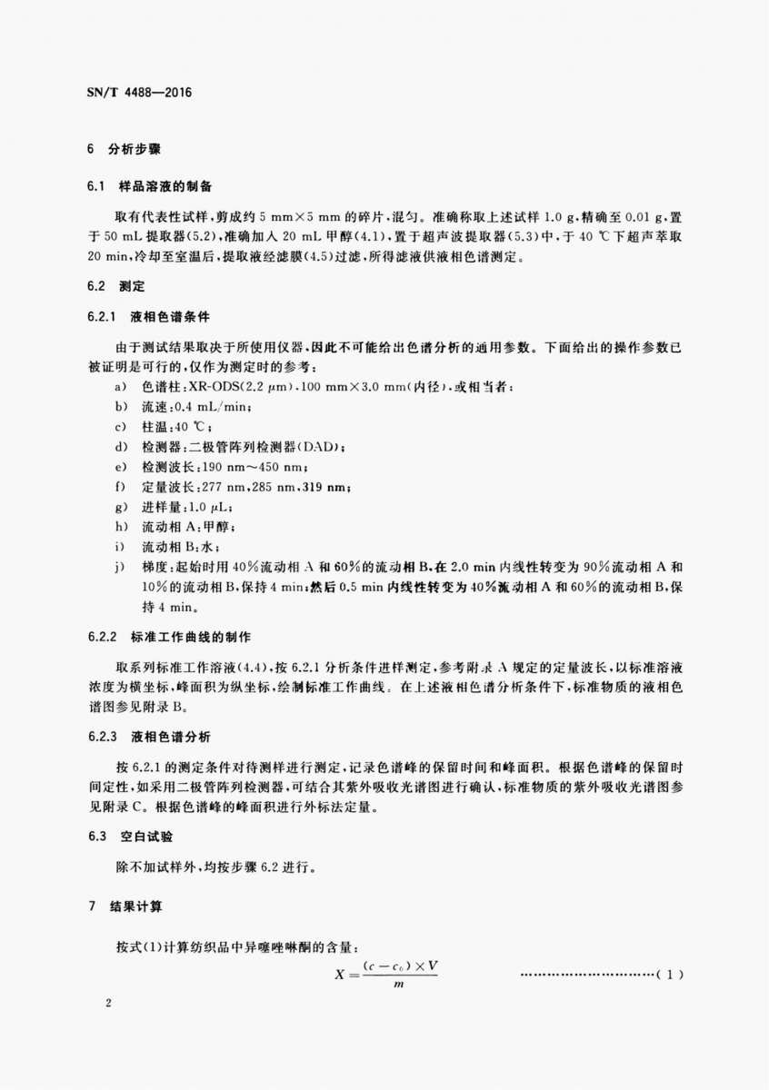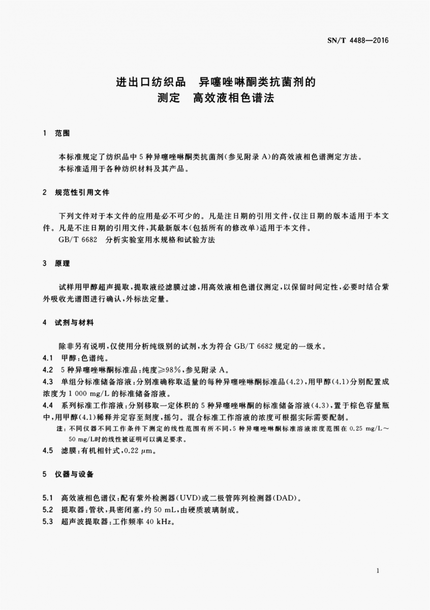 SN/T 4488-2016 進(jìn)出口紡織品 異噻唑啉酮類抗菌劑的測(cè)定 高效液相色譜法