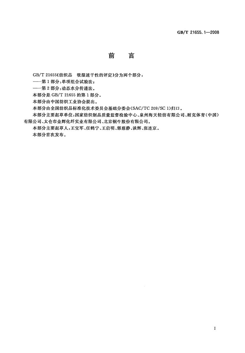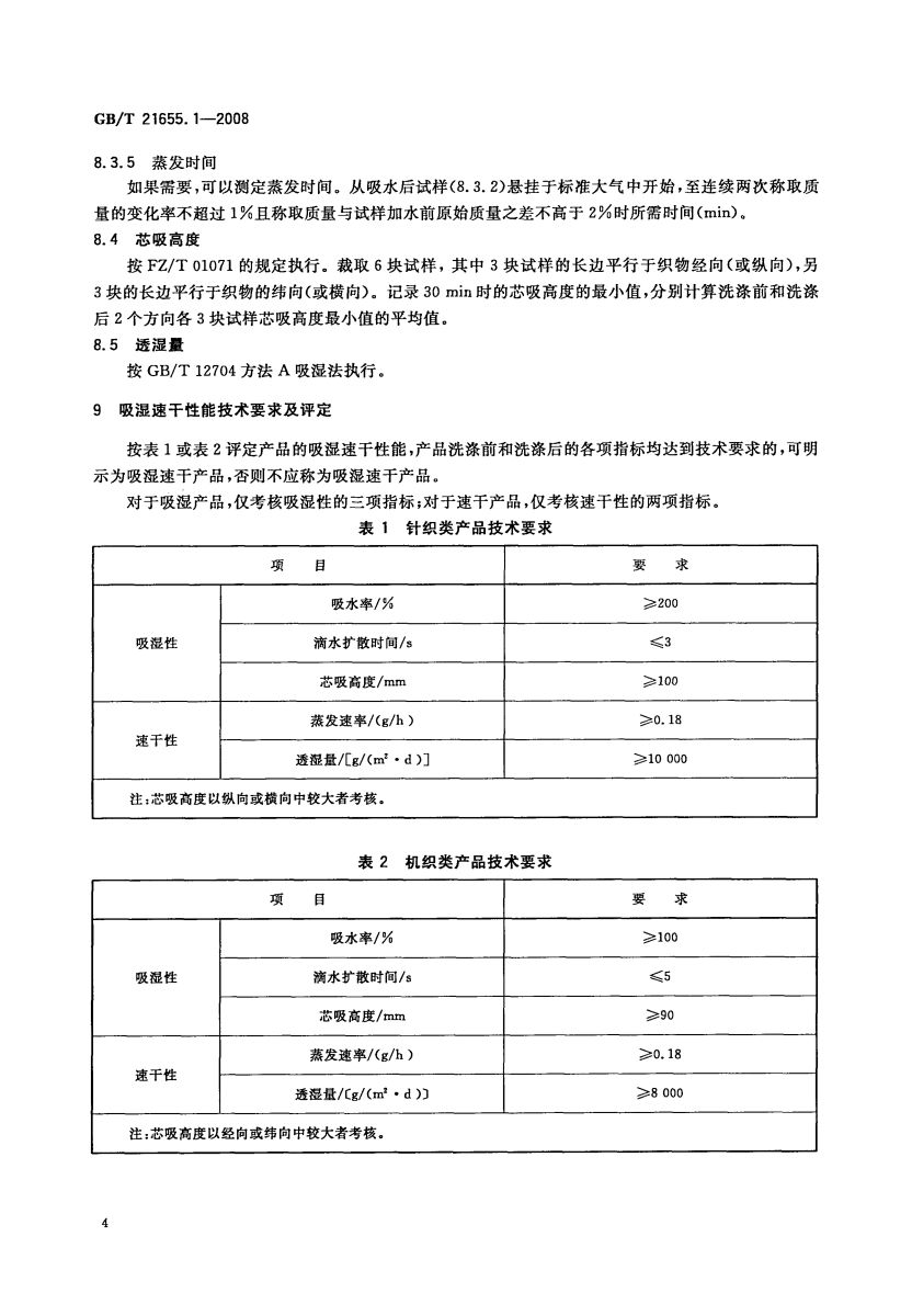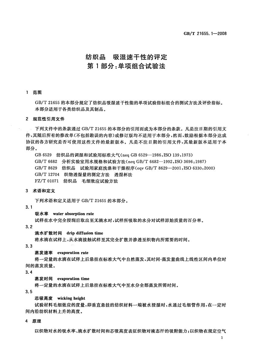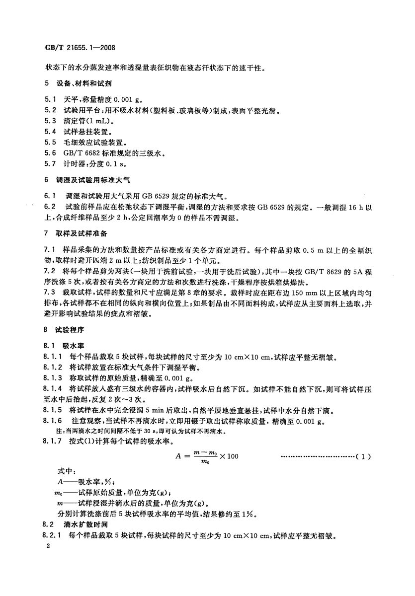 GB/T 21655.1-2008 紡織品 吸濕速干性的評定 第1部分:單項組合試驗法