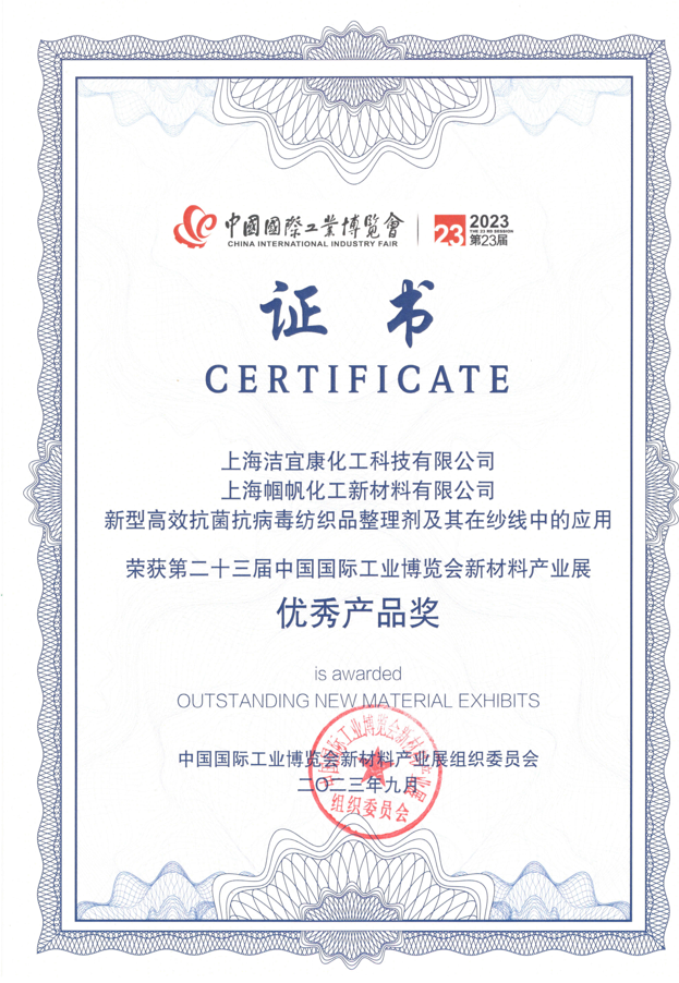 Excellent Products Award of New Materials Industry Exhibition in the 23rd China International Industry Exhibition
