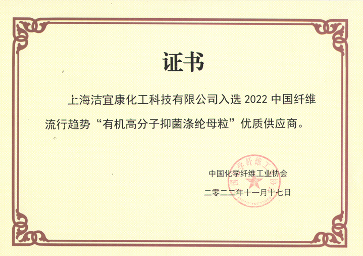 High-quality supplier awarded in 2022 China Fiber Trend “organic polymer antibacterial polyester masterbatch”