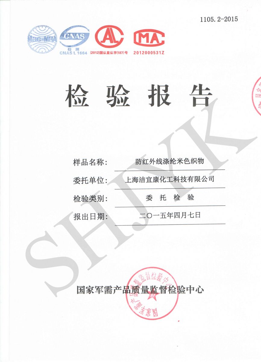 防紅外性能-防紅外滌綸米色織物--國家軍需產品質檢中心