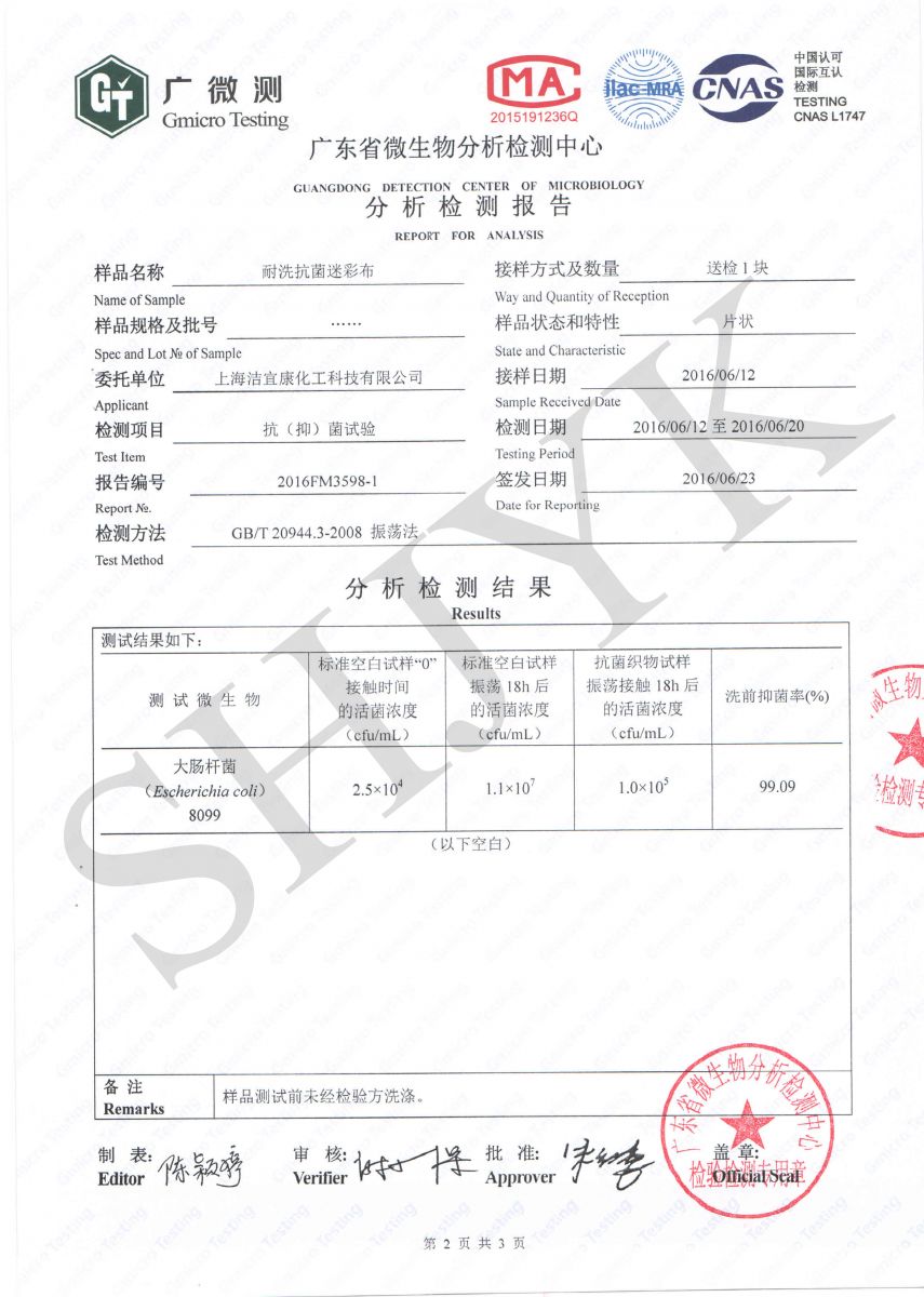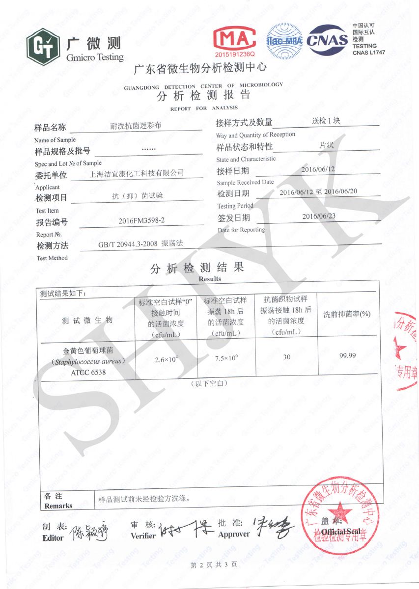 Camouflage clothing - Antibacterial test -GB--Gmicro Testing