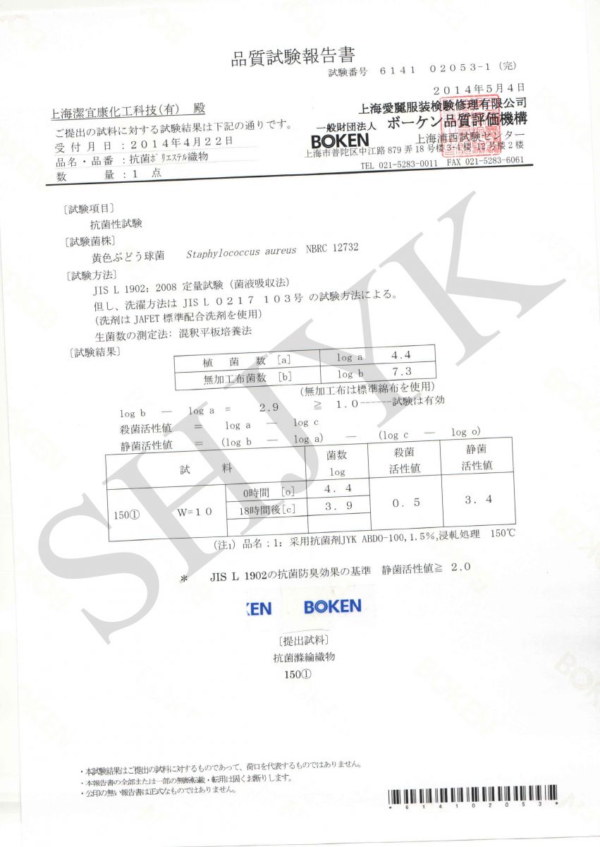 Polyester antibacterial test -JYK ABDO-100 ( 1.5% dosage )- BOKEN