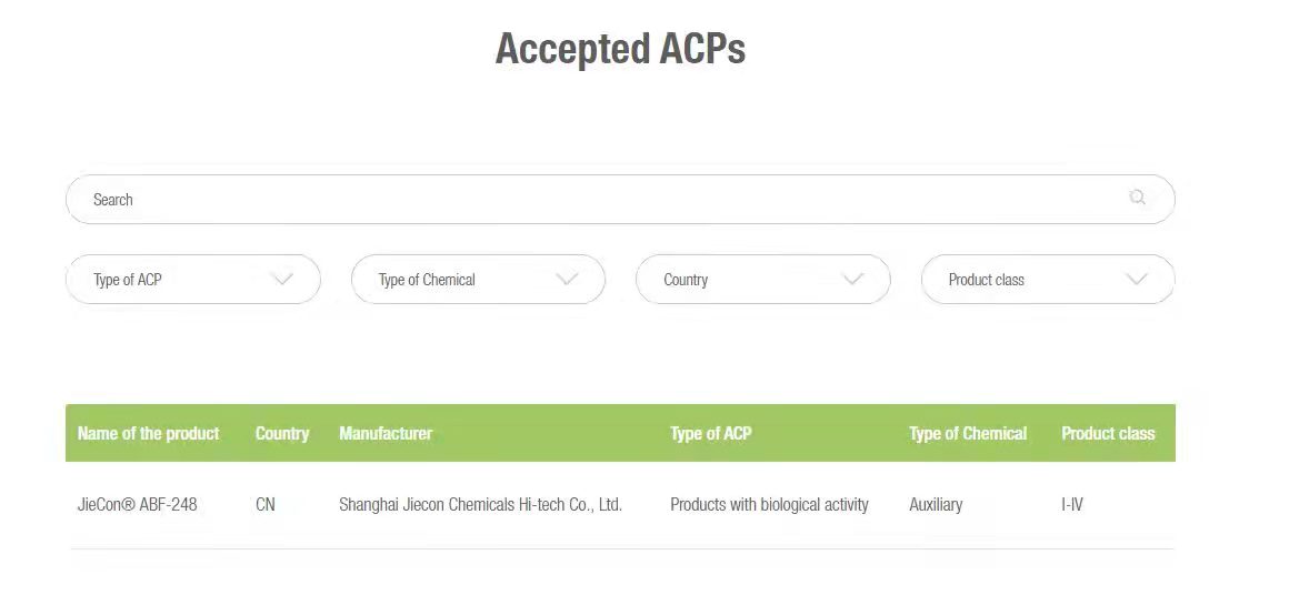 我司抗菌劑JYK ABF-248已成功獲得Oeko-Tex的ACP認(rèn)證,相關(guān)認(rèn)證結(jié)果請通過下方網(wǎng)站查詢:
