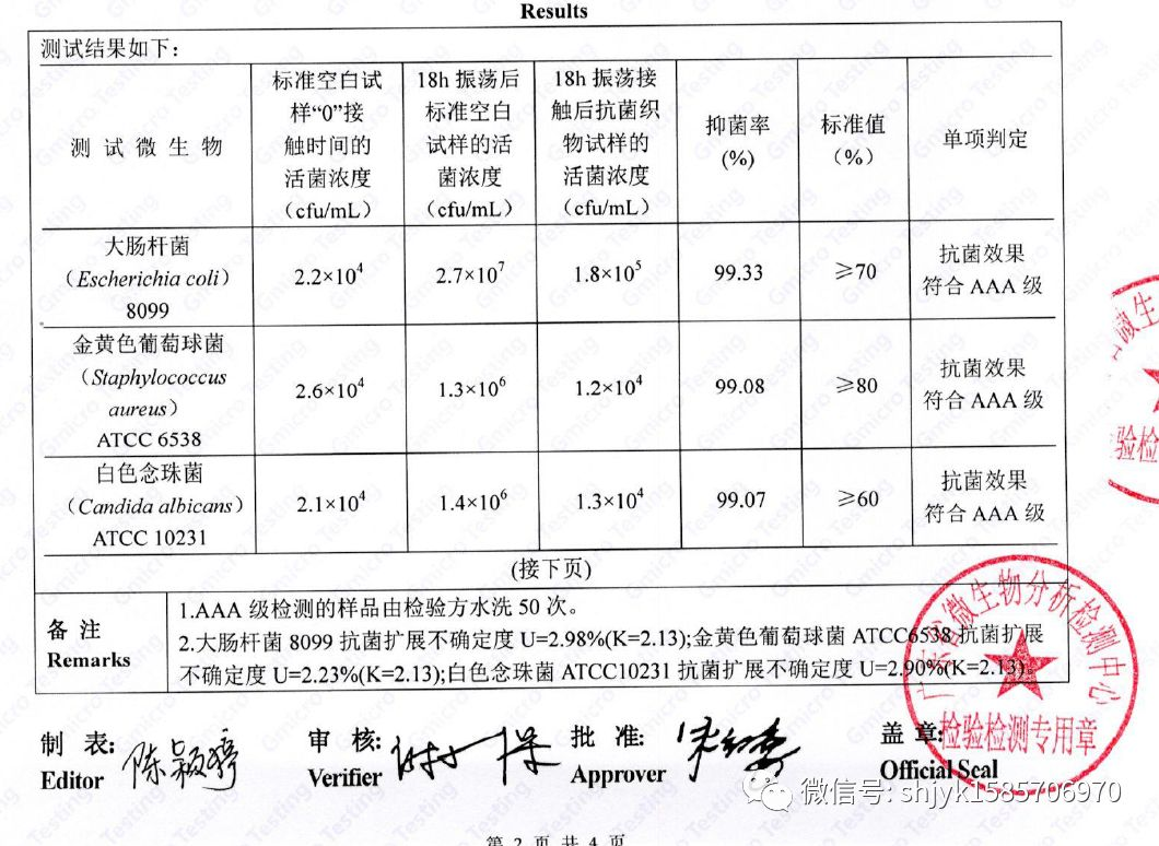 經過檢測,本產品具有良好的抗菌性能,分別如下所示: