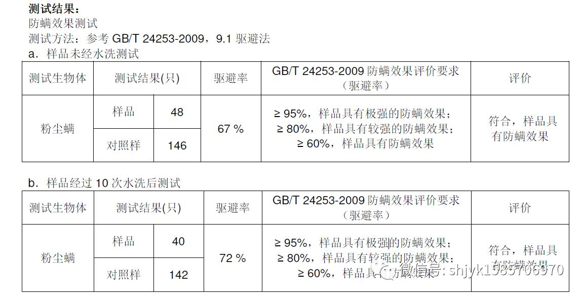 經測試,此毛巾具有良好防螨效果,且具有良好的耐洗滌性能。