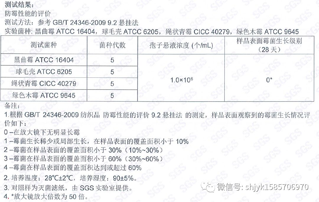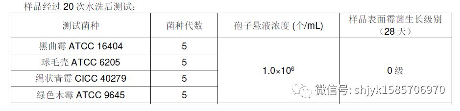 該產品防霉性能的耐洗滌性能良好,洗滌20次后的防霉性能仍為0級。