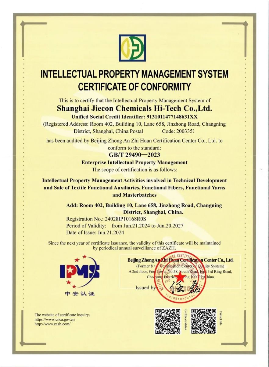 Under the guidance of innovation-driven development strategy and great attention to intellectual property work, Shanghai Jiecon Chemicals Hi- Tech Co., LTD. (herein after referred to as "Jiecon") continues to deliver good news!
