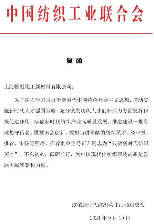 (3) Appointed as a member of the standardization Technical Committee of China Textile Industry Federation