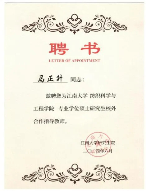 (5) Appointed by the College of Chemistry and Chemical Engineering of Donghua University as an off-campus supervisor for doctoral students, and by the Graduate College of Jiangnan University as an off-campus cooperative instructor for professional degree master students of the College of Textile Science and Engineering of Jiangnan University. Jiecon will deepen the in-depth cooperation with the two universities, and carry out more talent training and in-depth cooperation in industry-university-research projects.