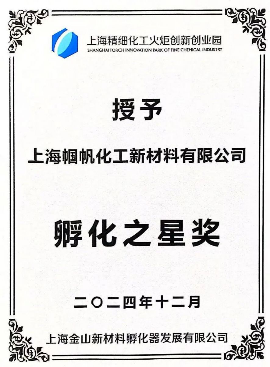 (4) Shanghai Guofan won the 2024 Incubation Star Award of Shanghai Fine Chemical Torch Innovation and Entrepreneurship Park.